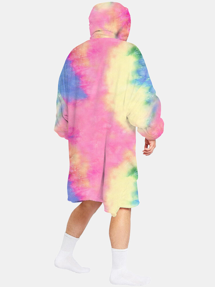 Robes - Mens Tie Dye Two-Sided Wearable Fleece Oversized Blanket Hoodie Loungewear With Handy Pocket