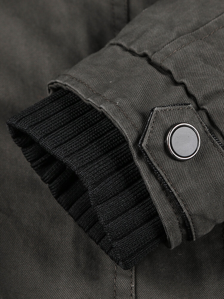 Mens 100% Cotton Fleece Lined Warm Solid Color Cargo Coats With Belt