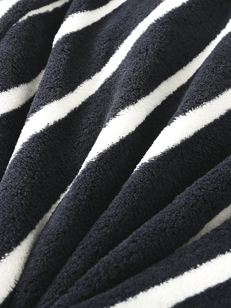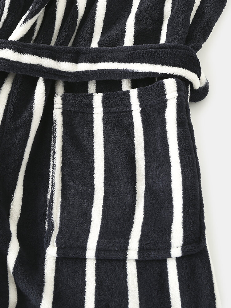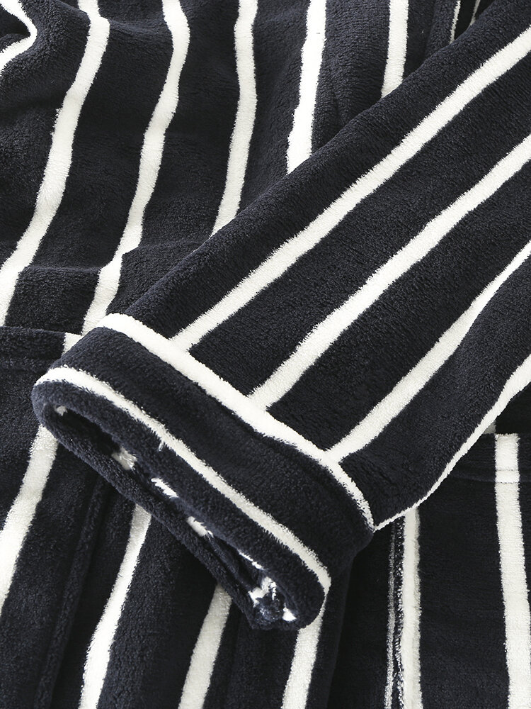 Robes - Mens Basic Striped Print Flannel Winter Thick Mid-Length Home Lounge Robes