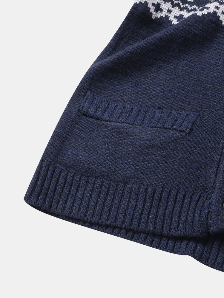 Cardigans - Mens Christmas Reindeer Button Thick Warm Casual Knitted Cardigan Sweater
