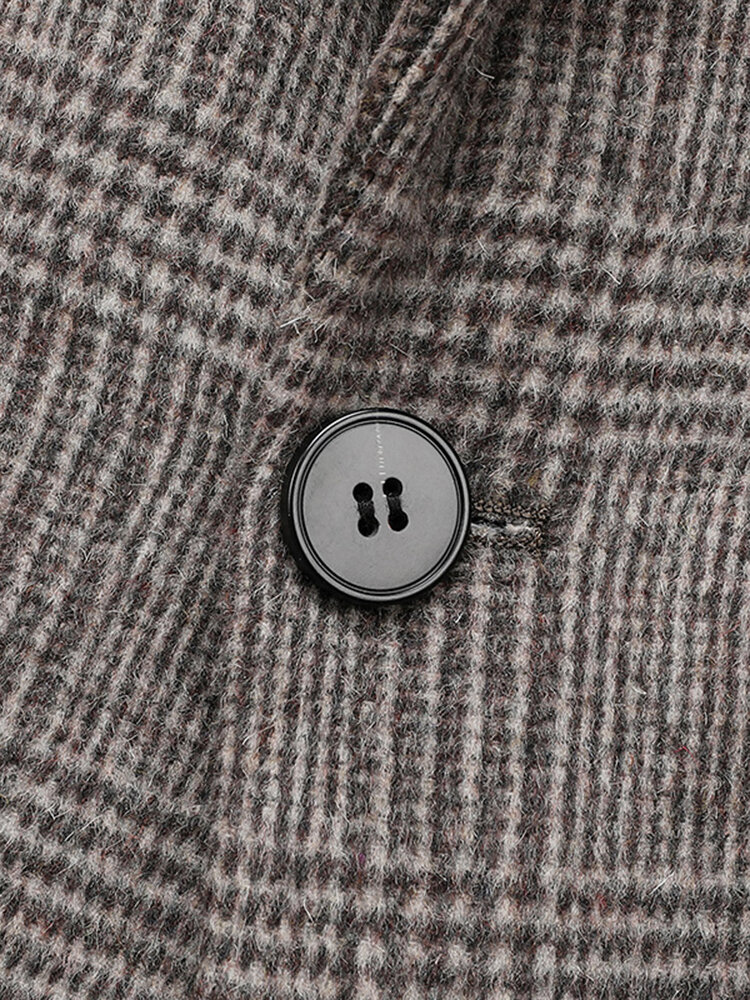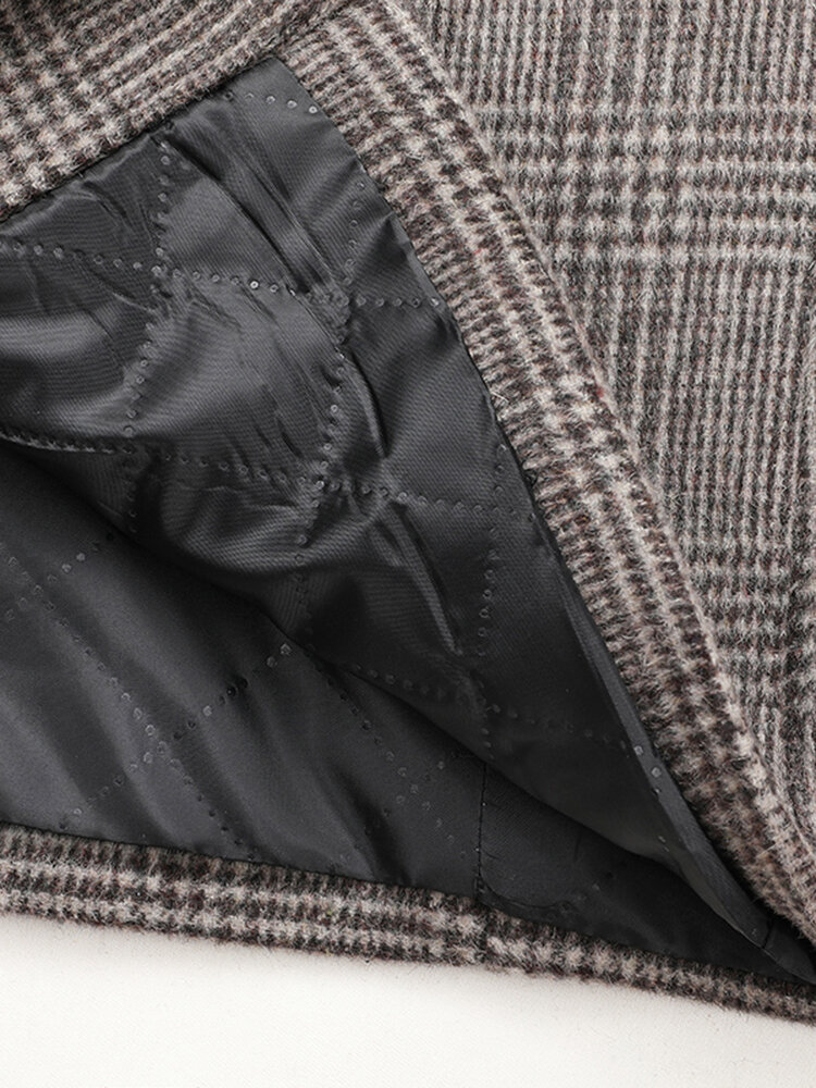 Coats - Mens Houndstooth Woolen Single-Breasted Lapel Mid-Length Overcoat