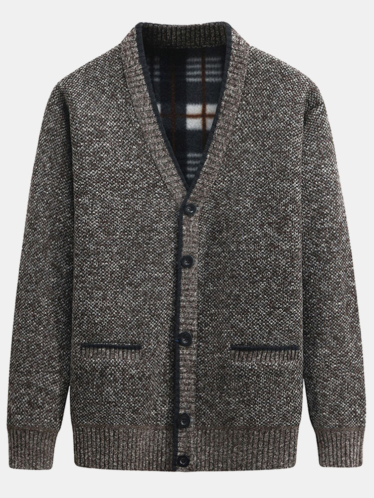 Cardigans - Mens Knit Ribbed Button Front V-Neck Casual Double Pocket Thick Cardigans