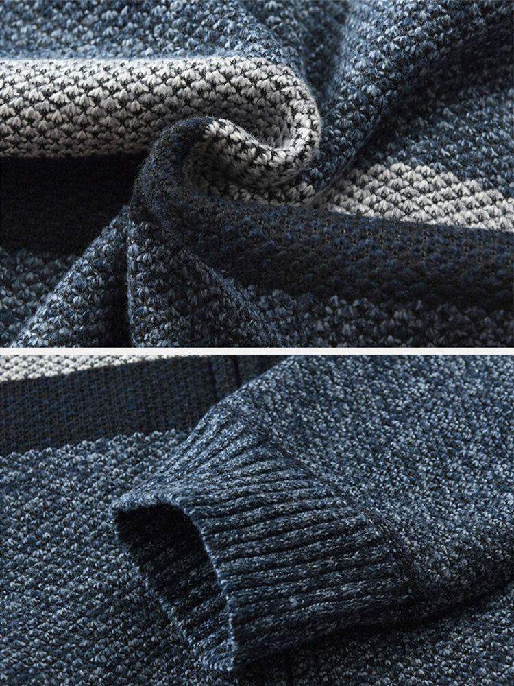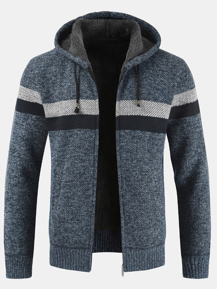 Cardigans - Mens Patchwork Zip Front Rib-Knit Plush Lined Hooded Cardigans With Pocket