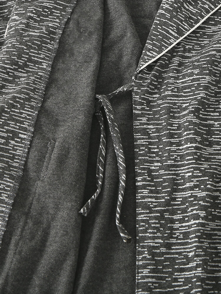 Robes - Mens Solid Color Letter Embroidery Double Pocket Lapel Sleepwear Robes With Sashes