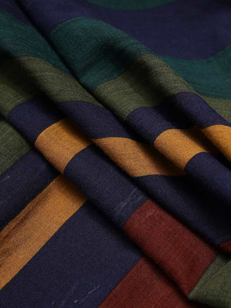 Robes - Mens Vintage Multi-Color Striped Print Button Up Home Casual Long Sleeve Robes With Pockets