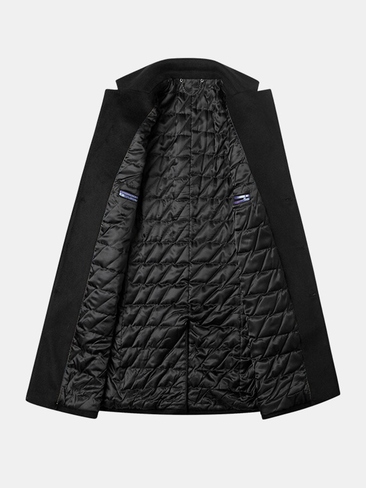 Coats - Mens Woolen Mid Length Single-Breasted Thick Business Coat