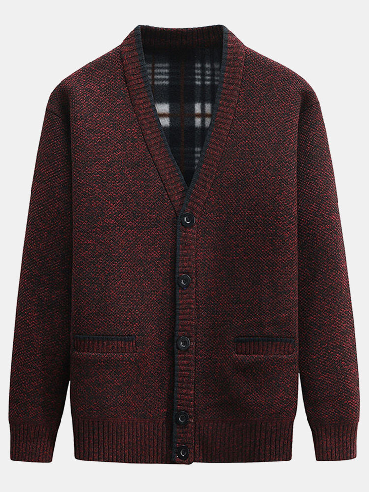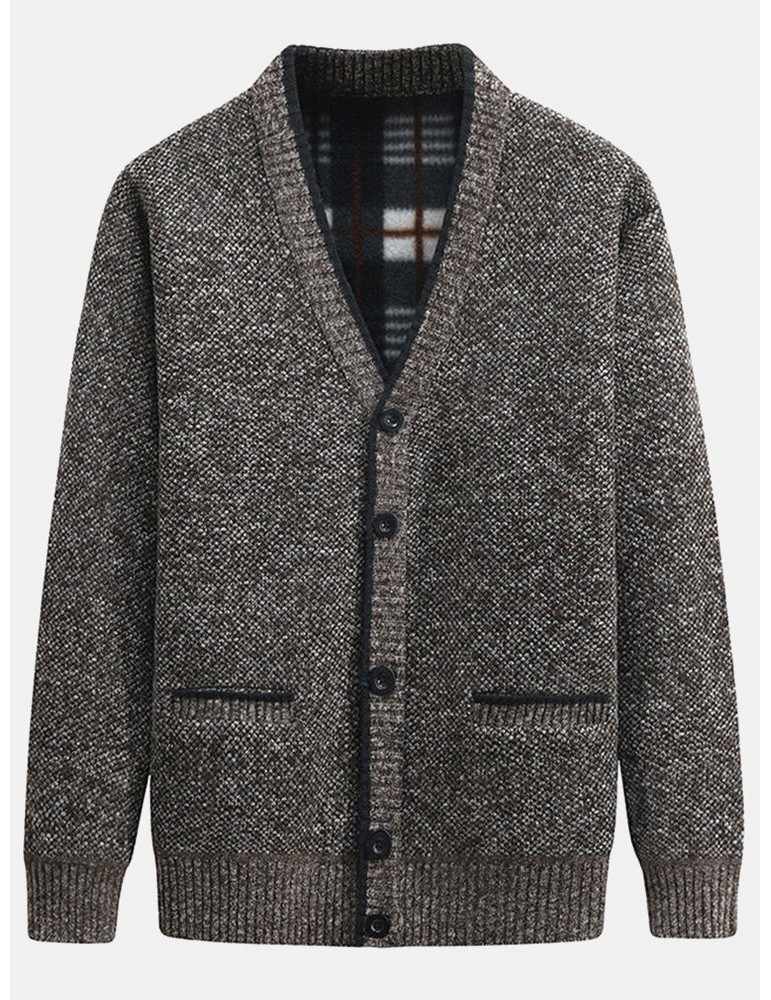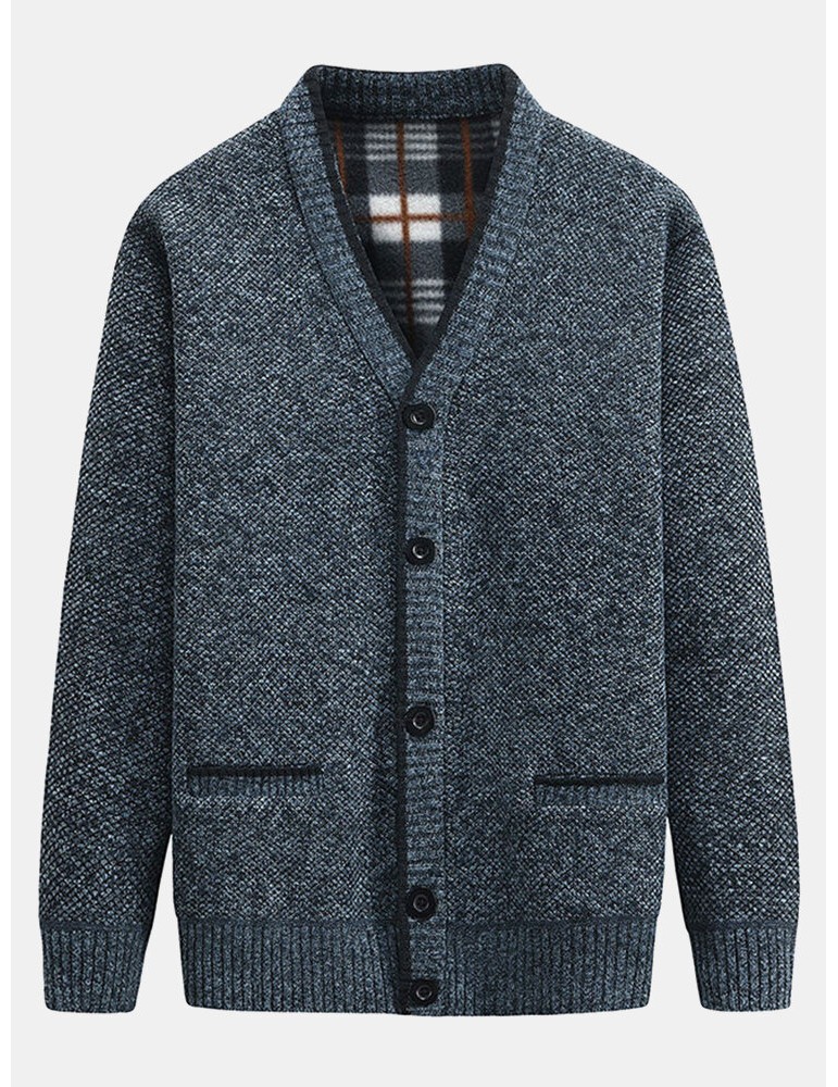 Cardigans - Mens Knit Ribbed Button Front V-Neck Casual Double Pocket Thick Cardigans
