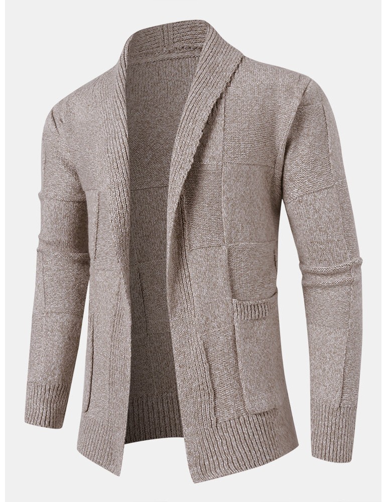Cardigans - Mens Open Front Solid Color Knitted Long Sleeve Sweater Cardigans With Pocket