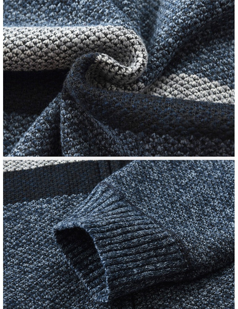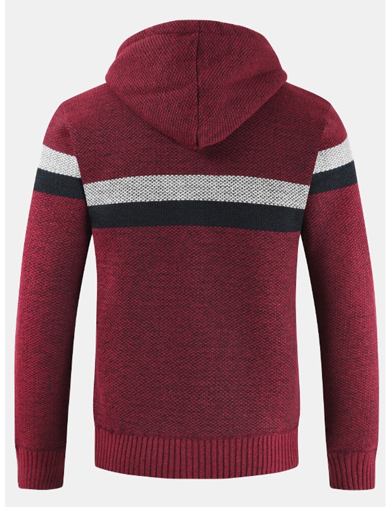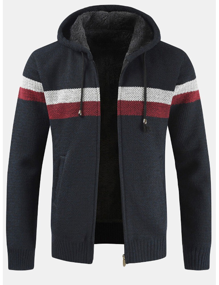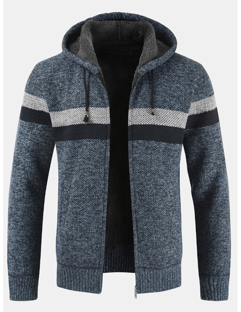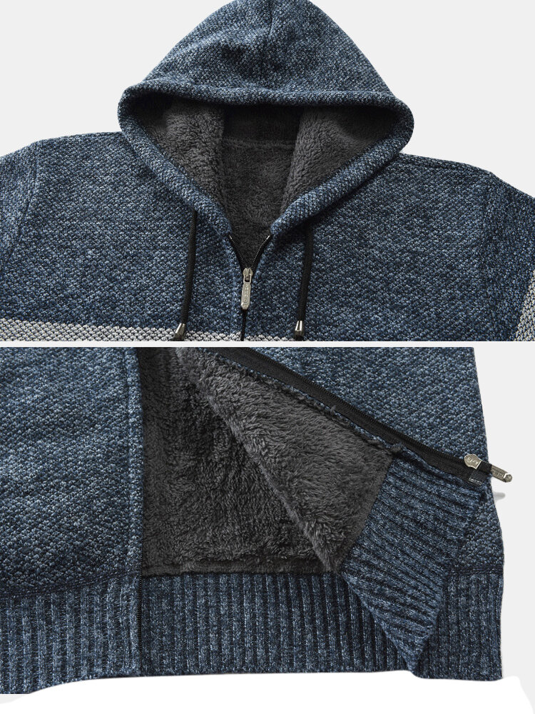 Cardigans - Mens Patchwork Zip Front Rib-Knit Plush Lined Hooded Cardigans With Pocket