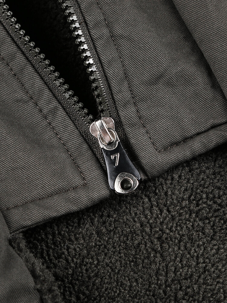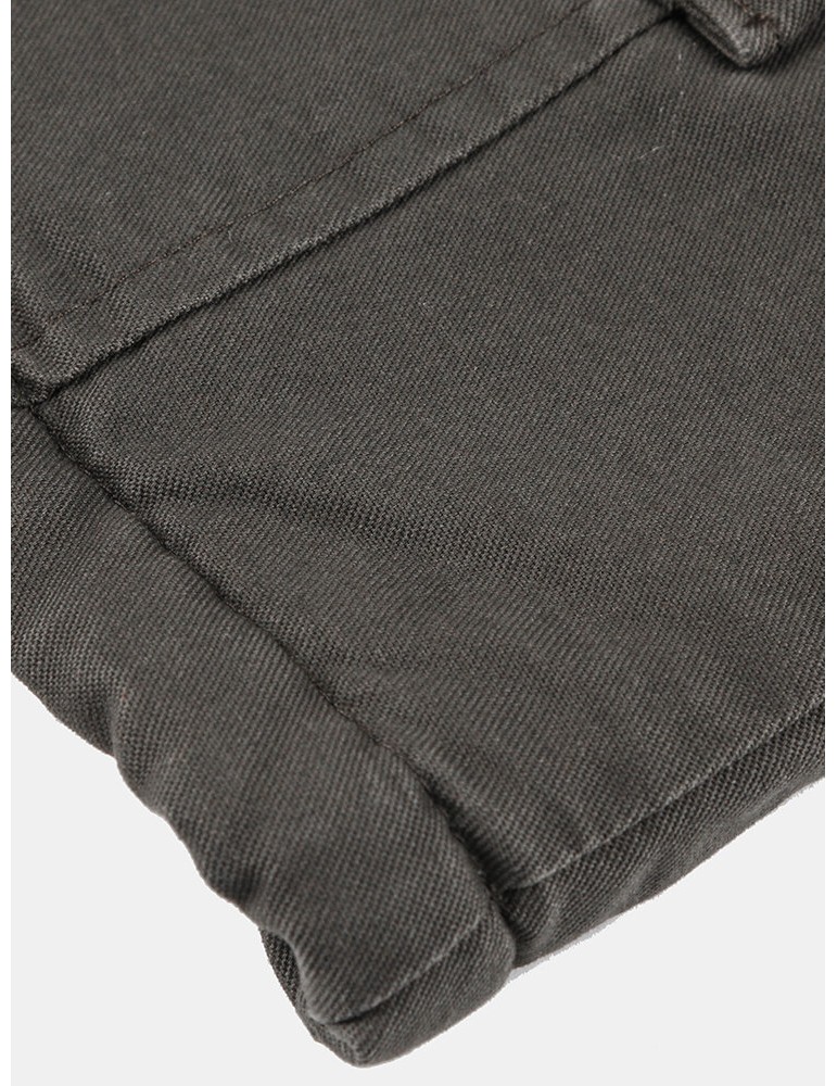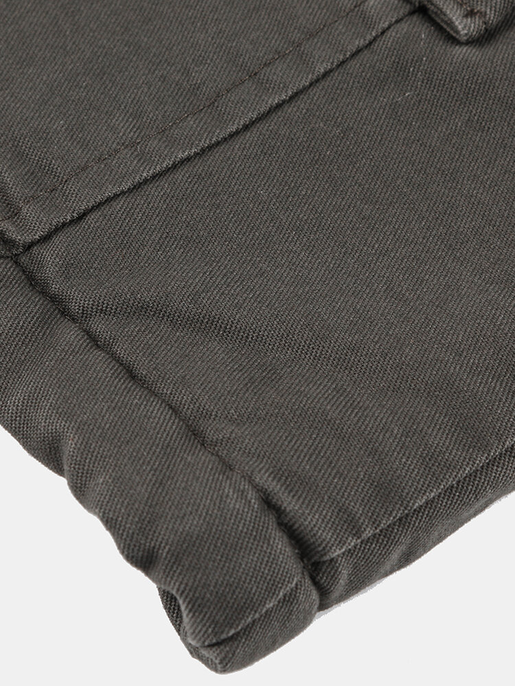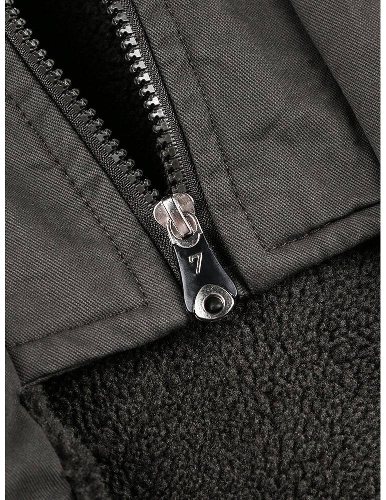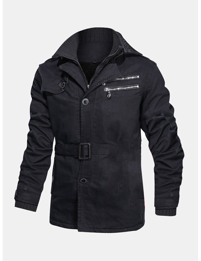Mens 100% Cotton Fleece Lined Warm Solid Color Cargo Coats With Belt