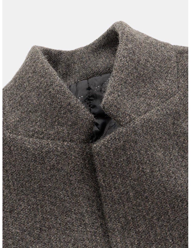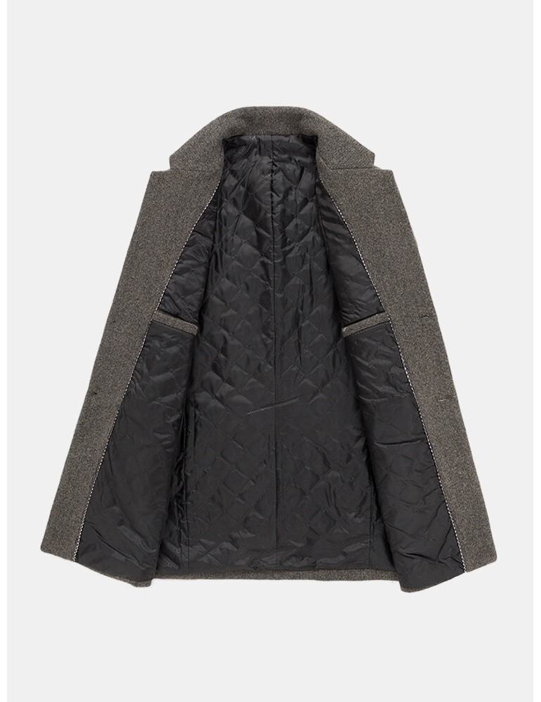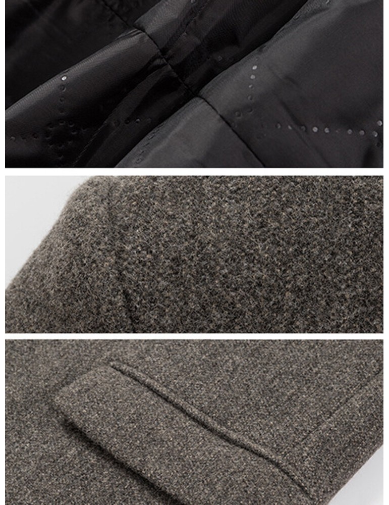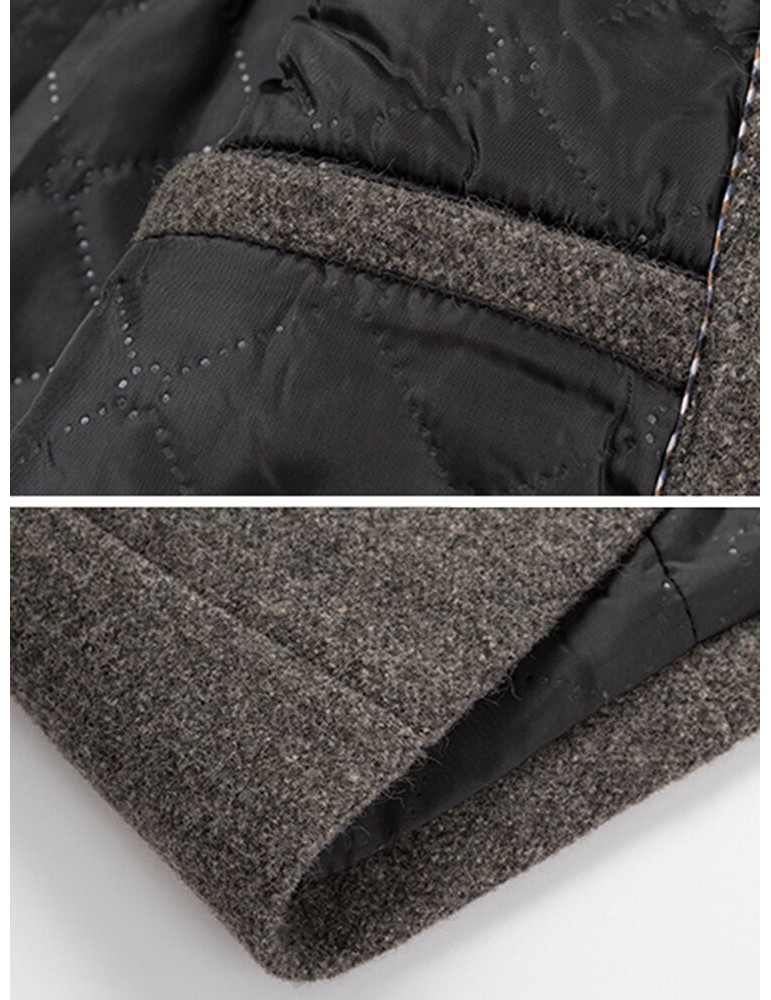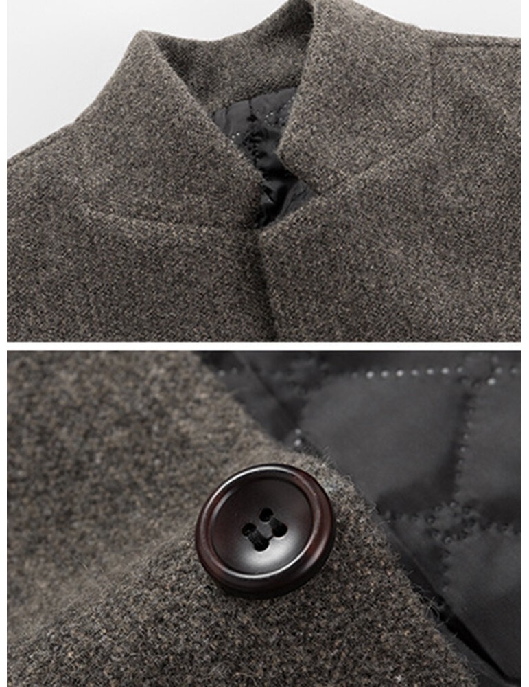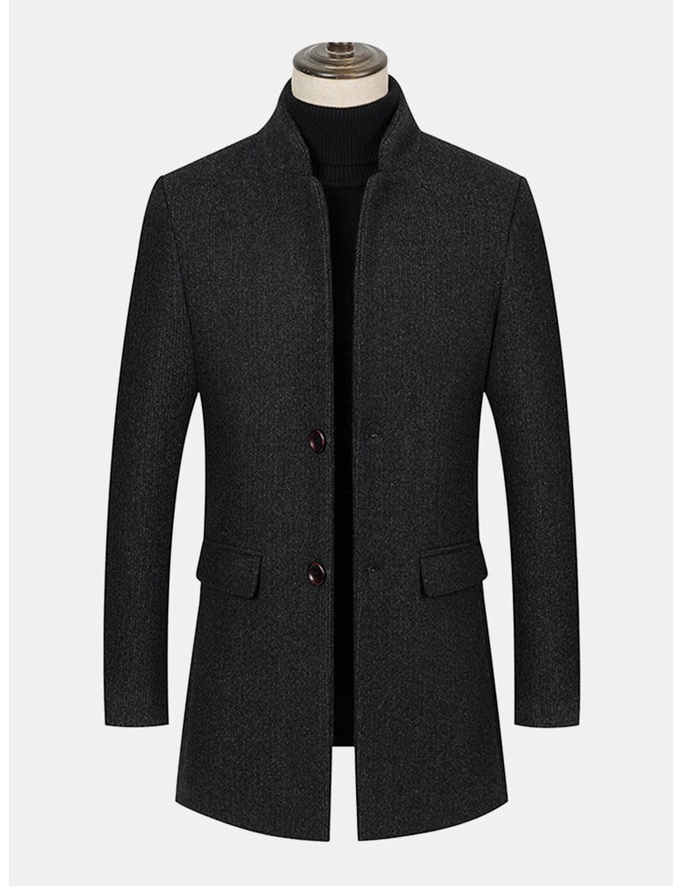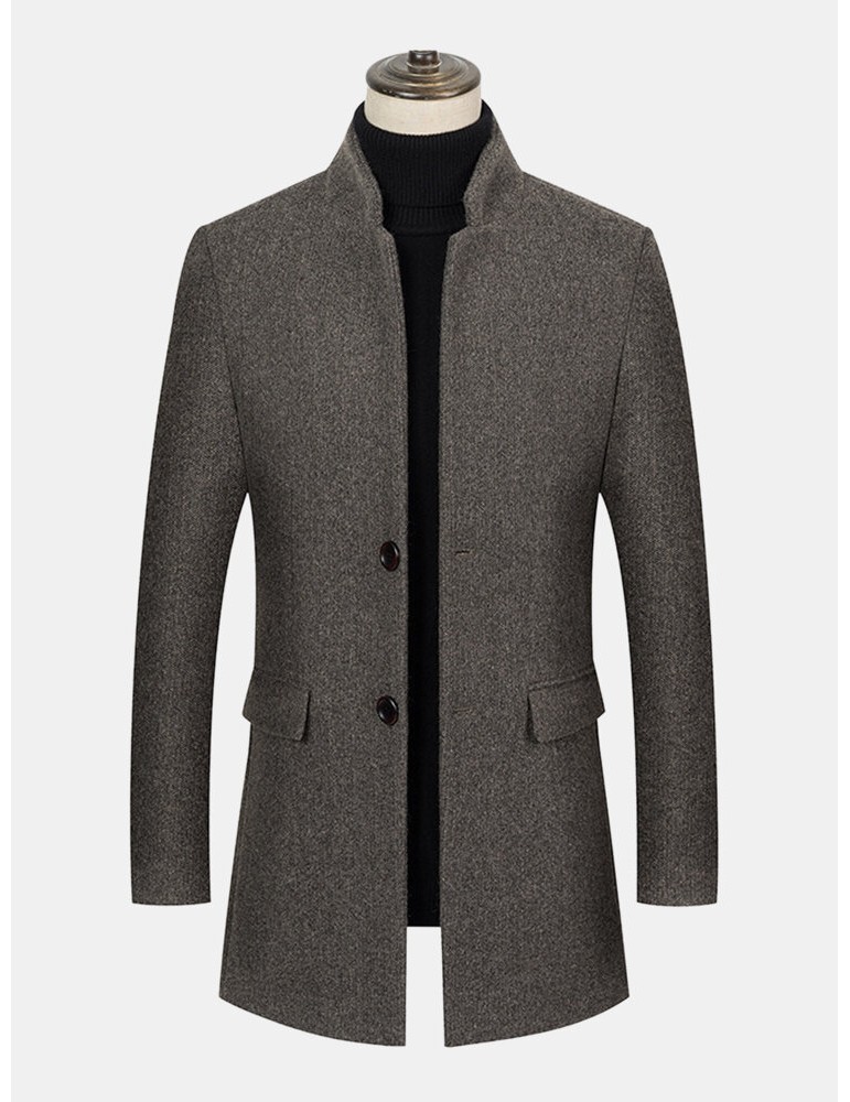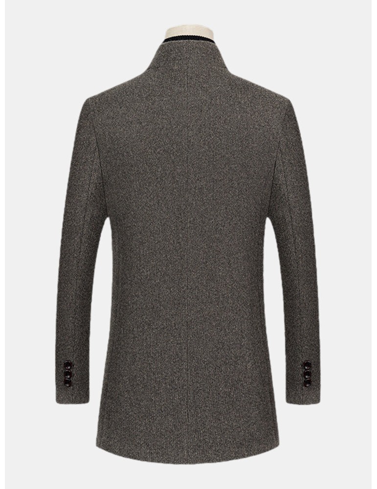 Coats - Mens Stand Color Mid Length Woolen Single-Breasted Thick Business Casual Coat