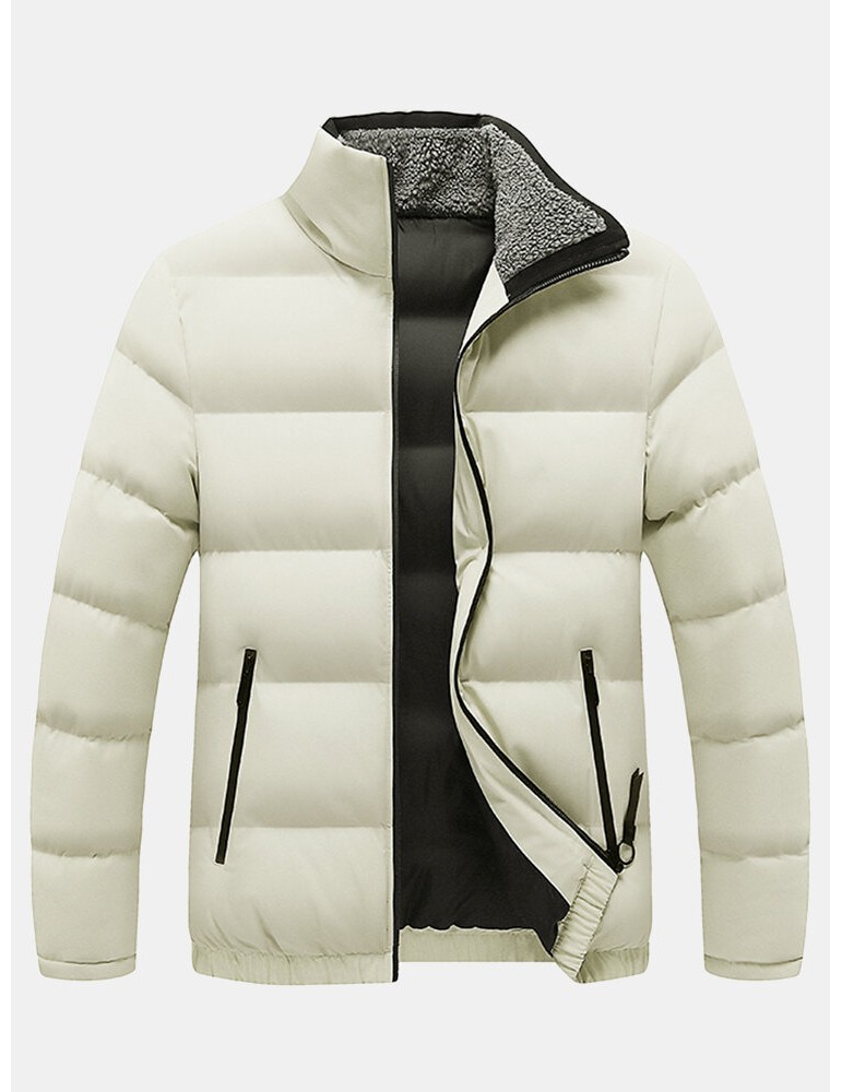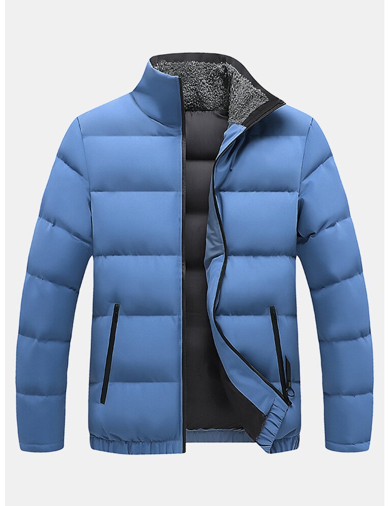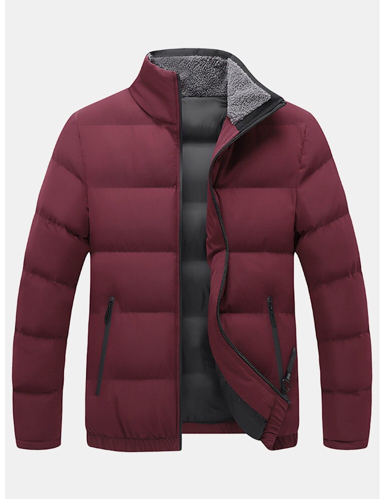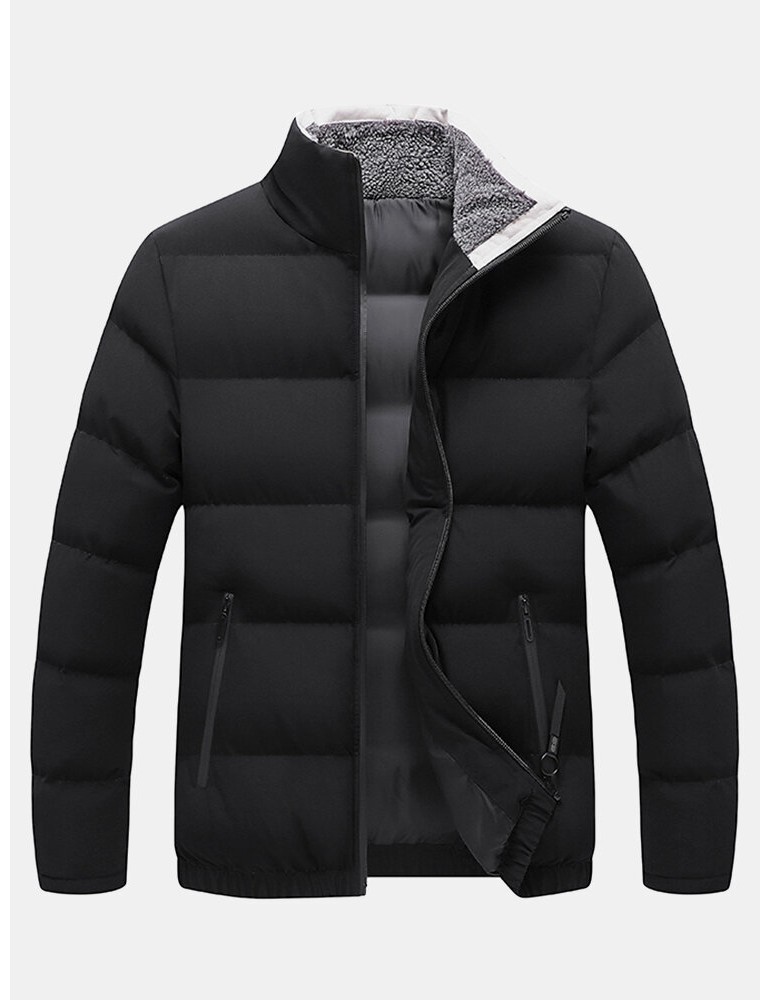 Coats - Mens Windproof Warm Stand Collar Long Sleeve Thicken Solid Color Coats