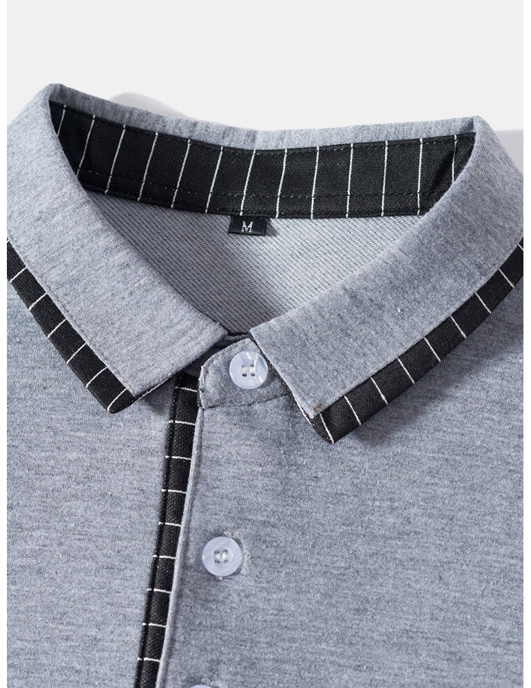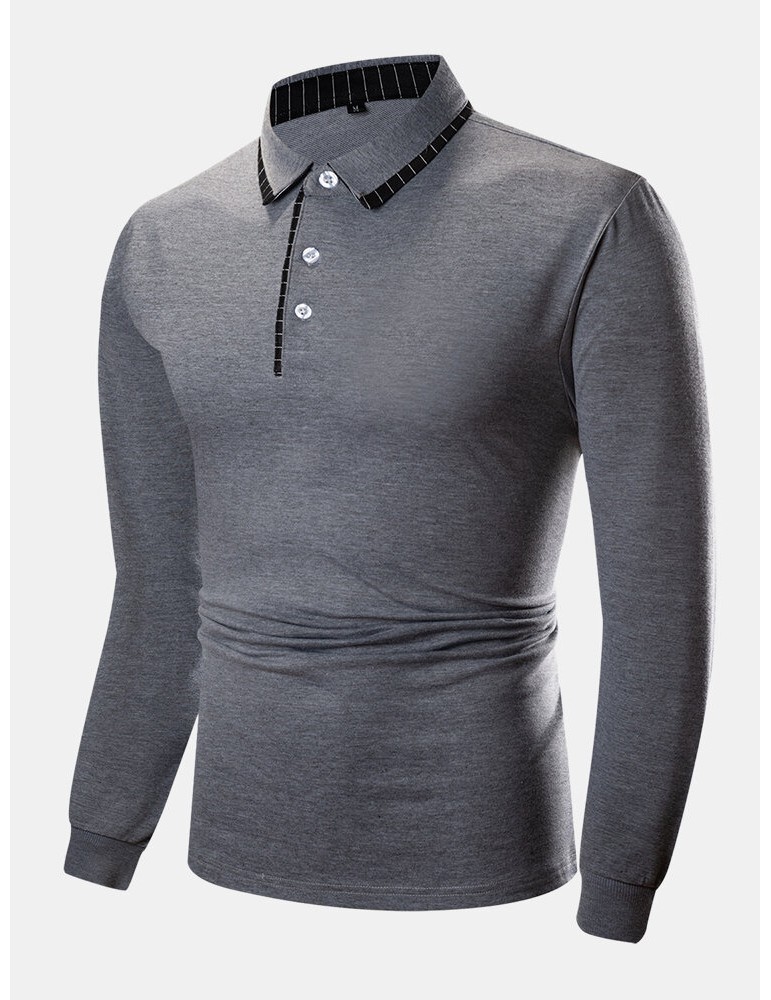 Golf Shirts - Mens 100% Cotton Stripe Collar Long Sleeve Plain Casual Golf Shirts