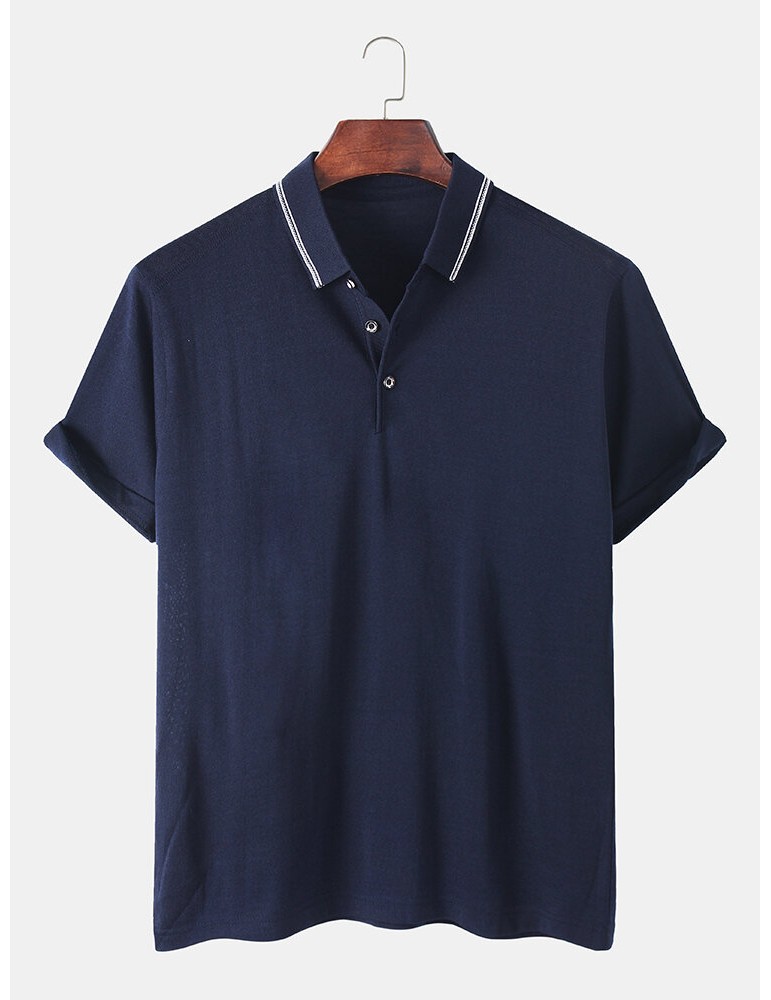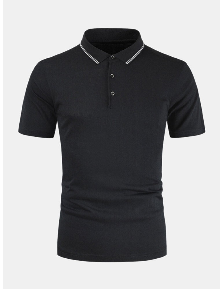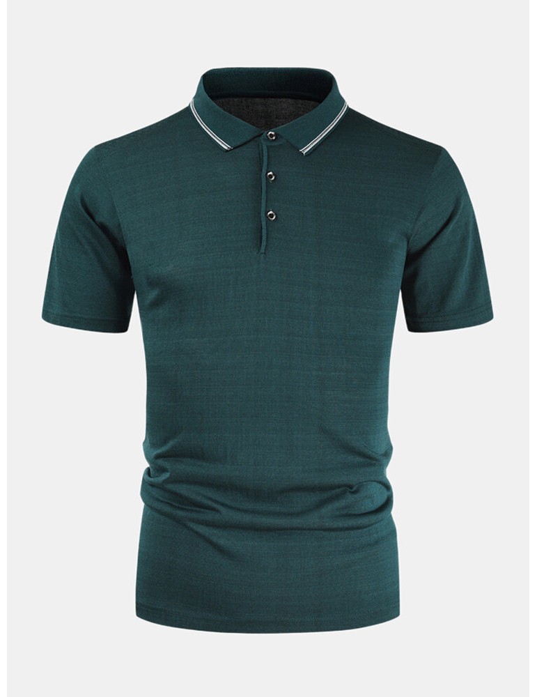 Golf Shirts - Mens Solid Color Fold Down Collar Breathable Half Open Casual Golf Shirts