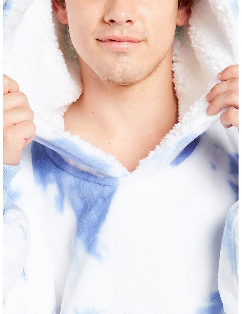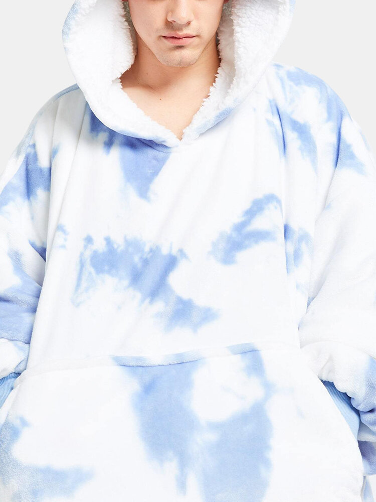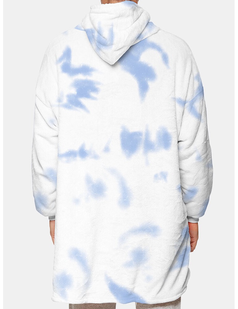 Robes - Mens Thicken TIe-Dye Fleece Lined Warm Loose Home Blanket Hoodie With Kangaroo Pocket