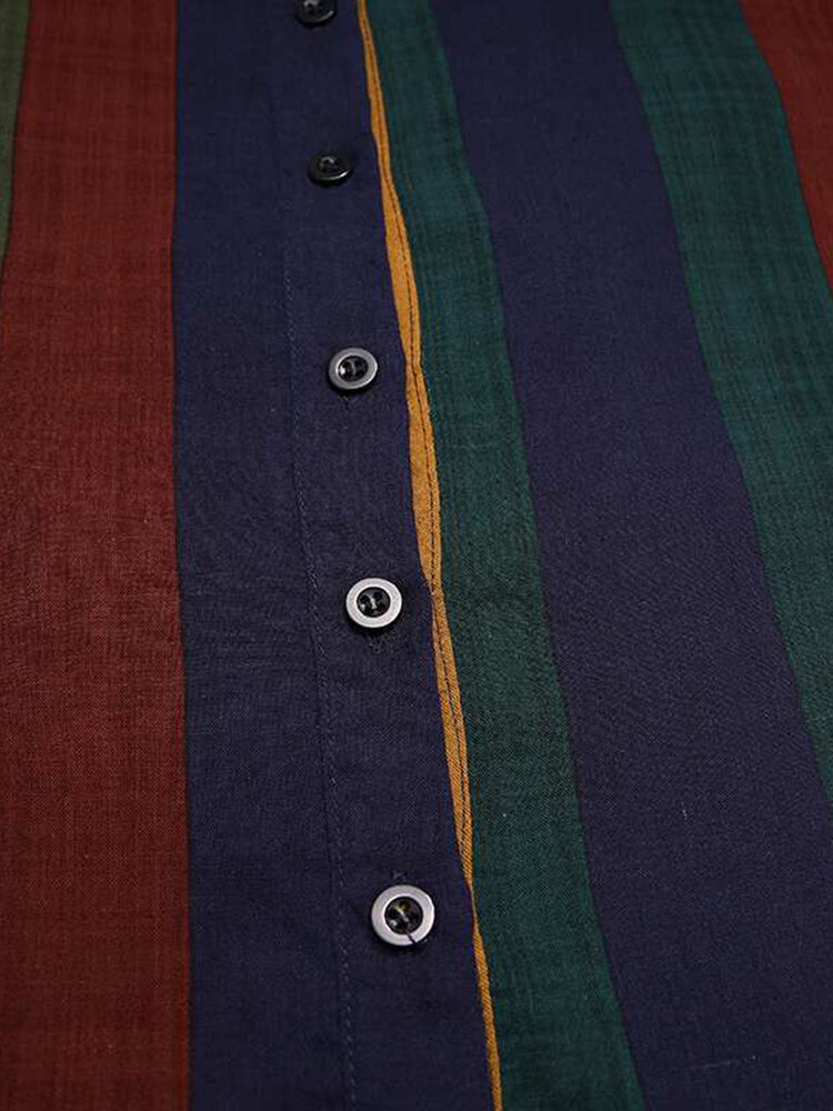 Robes - Mens Vintage Multi-Color Striped Print Button Up Home Casual Long Sleeve Robes With Pockets