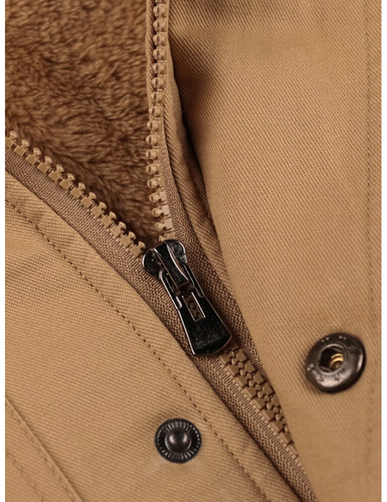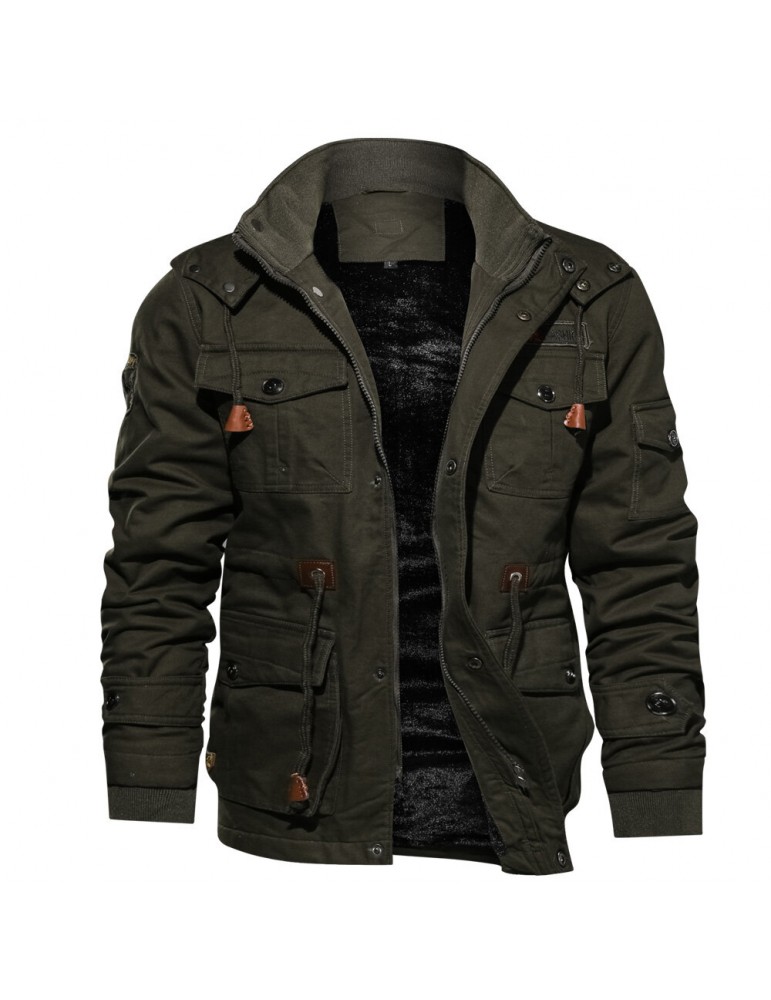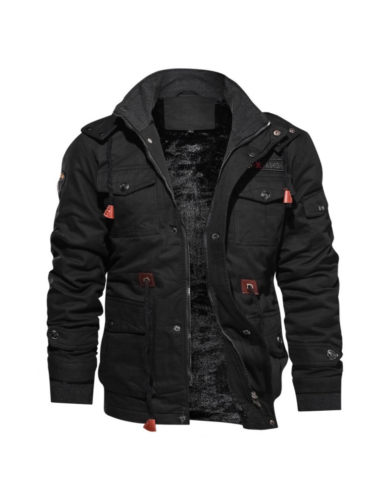 Coats - Mens Winter Fleece Warm Hooded Multi Pockets Casual Cotton Jacket