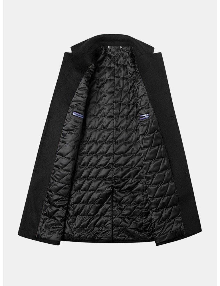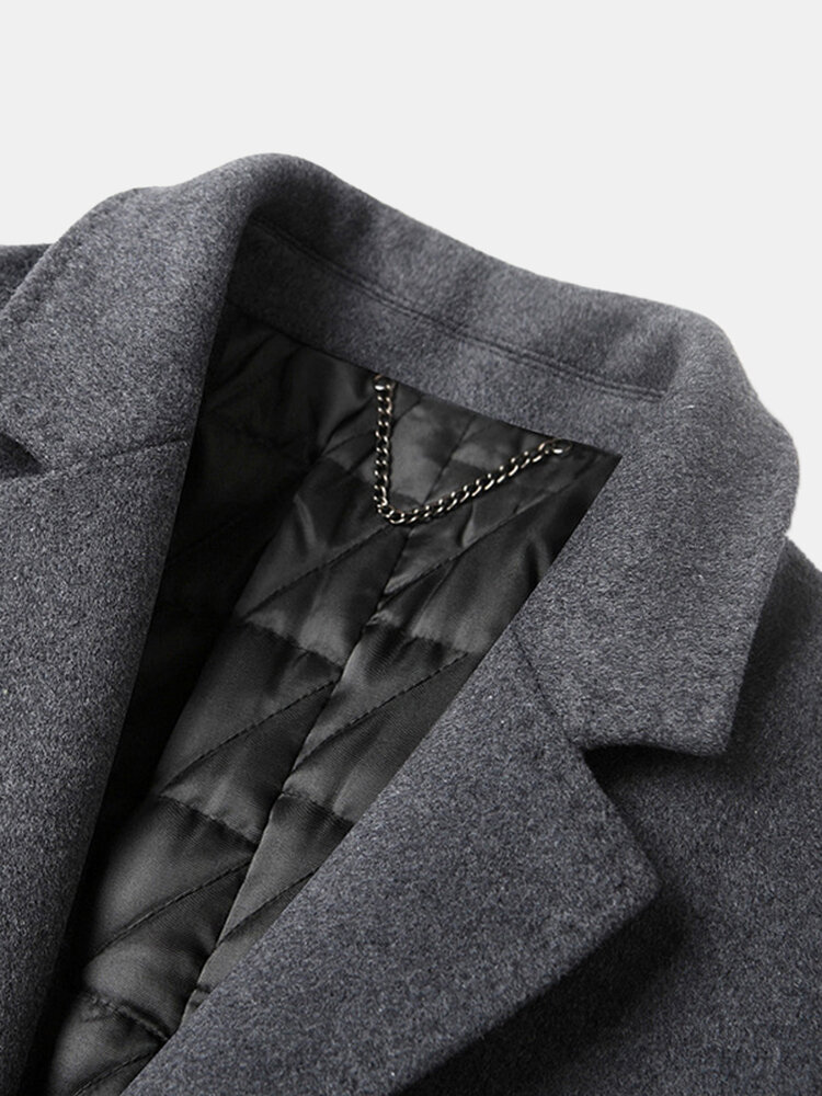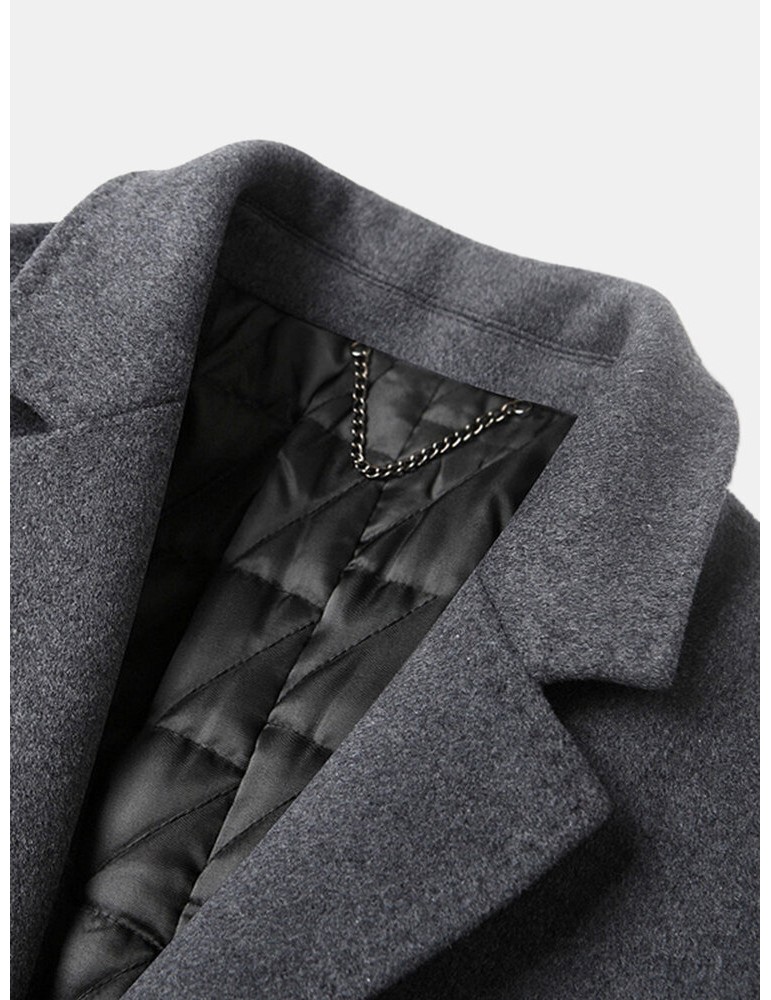 Coats - Mens Woolen Mid Length Single-Breasted Thick Business Coat