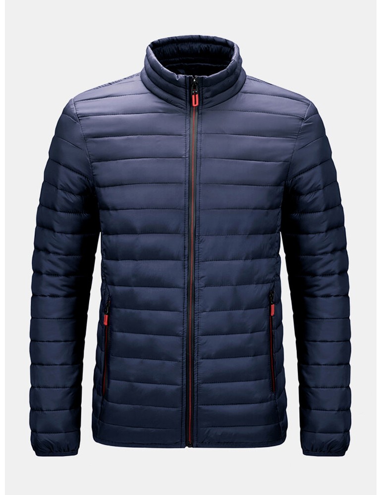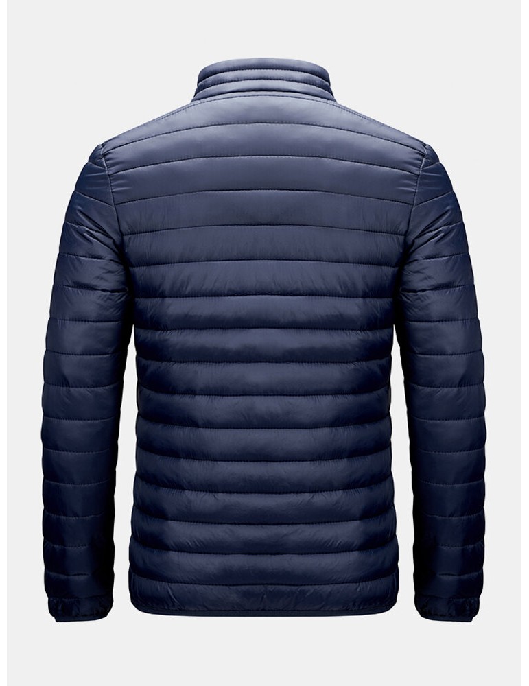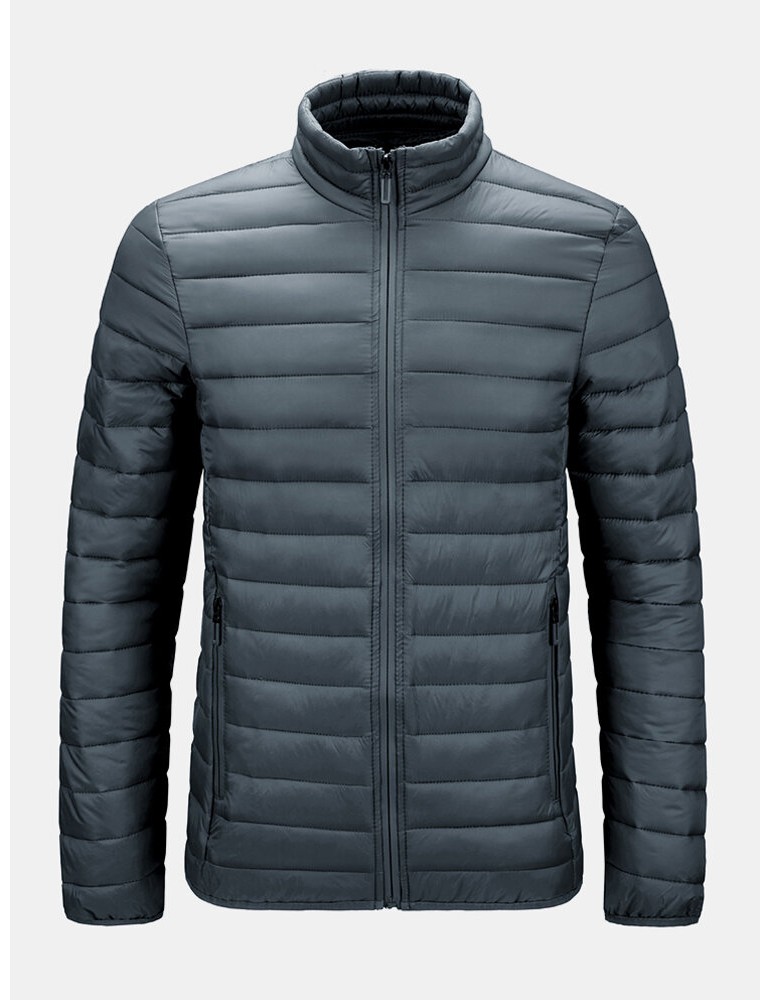 Coats - Mens Zip Front Quilted Solid Basic Padded Coats With Pocket