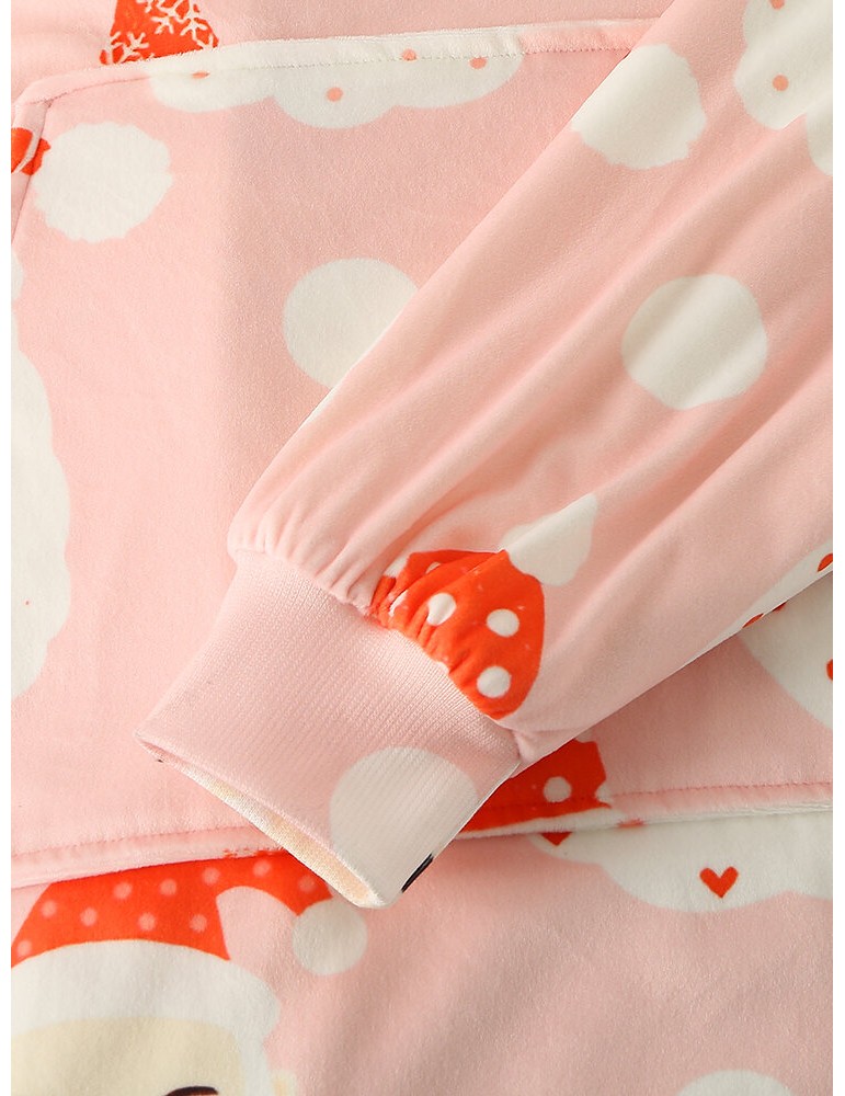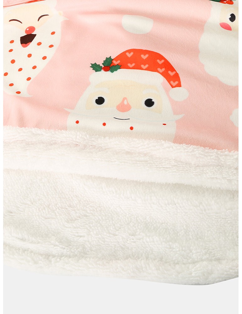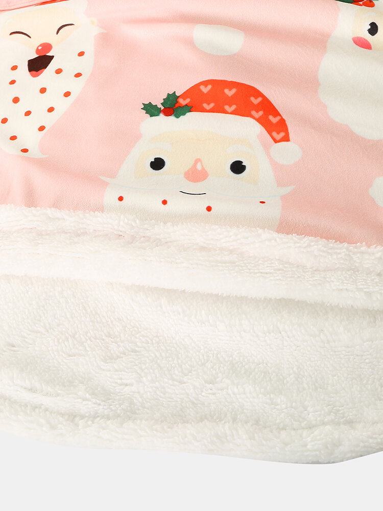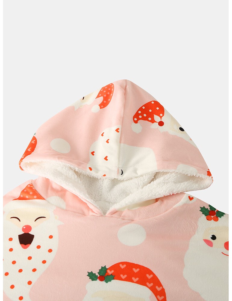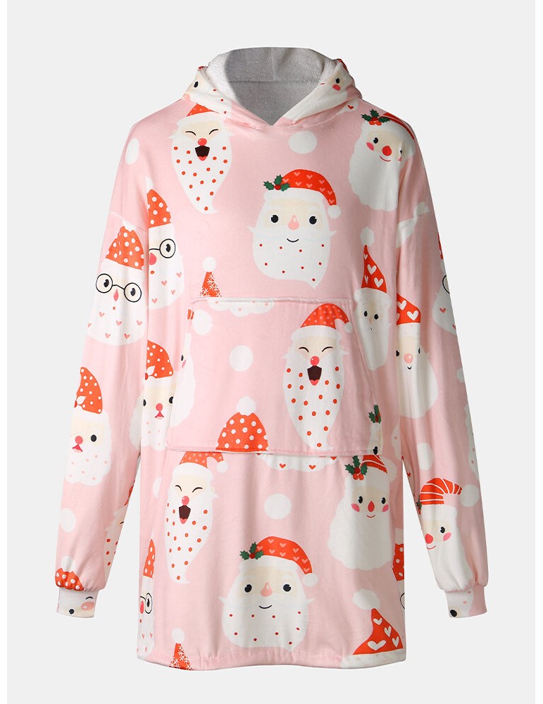 Robes - Mens Christmas Cartoon Santa Claus Print Thick Fleece Lined Reversible Home Blanket Hoodie