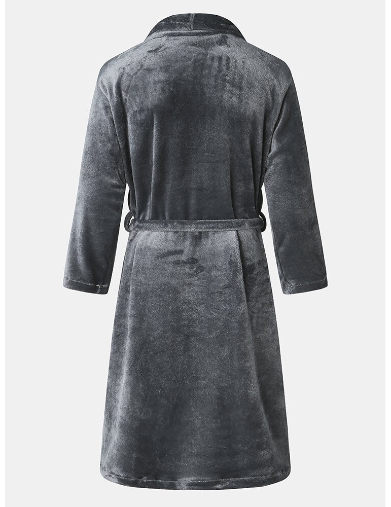 Robes - Mens Solid Color Flannel Thick Double Pocket Sashes Home Sleepwear Robes