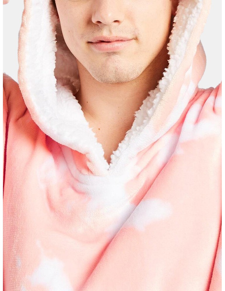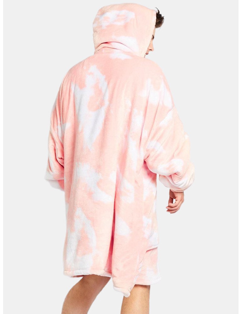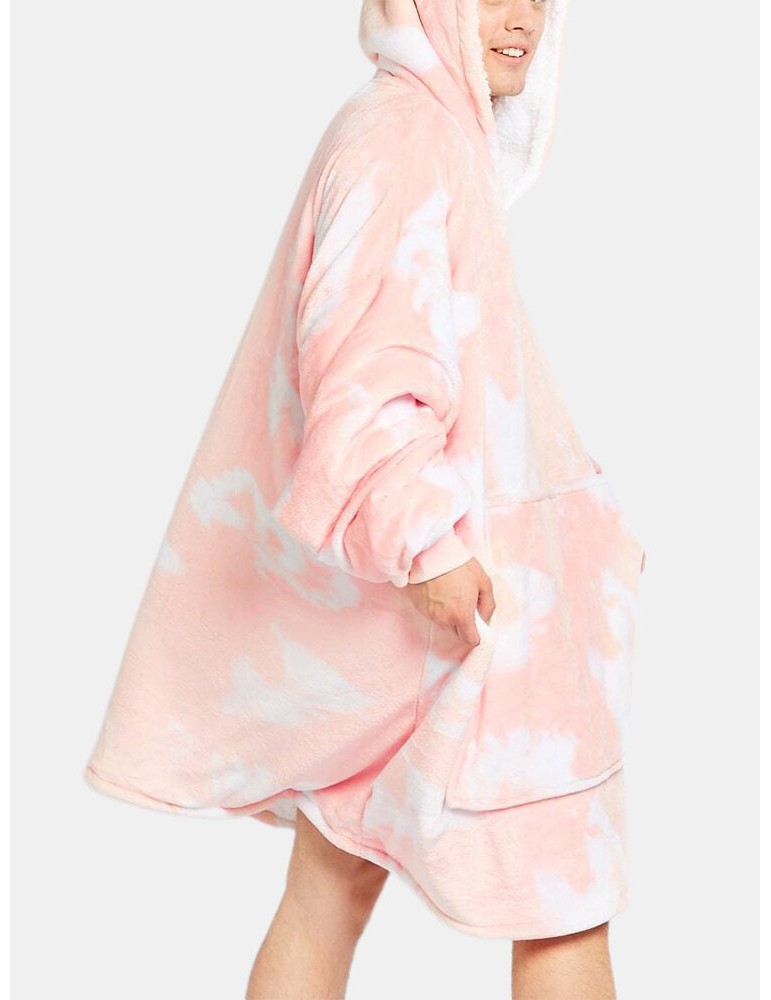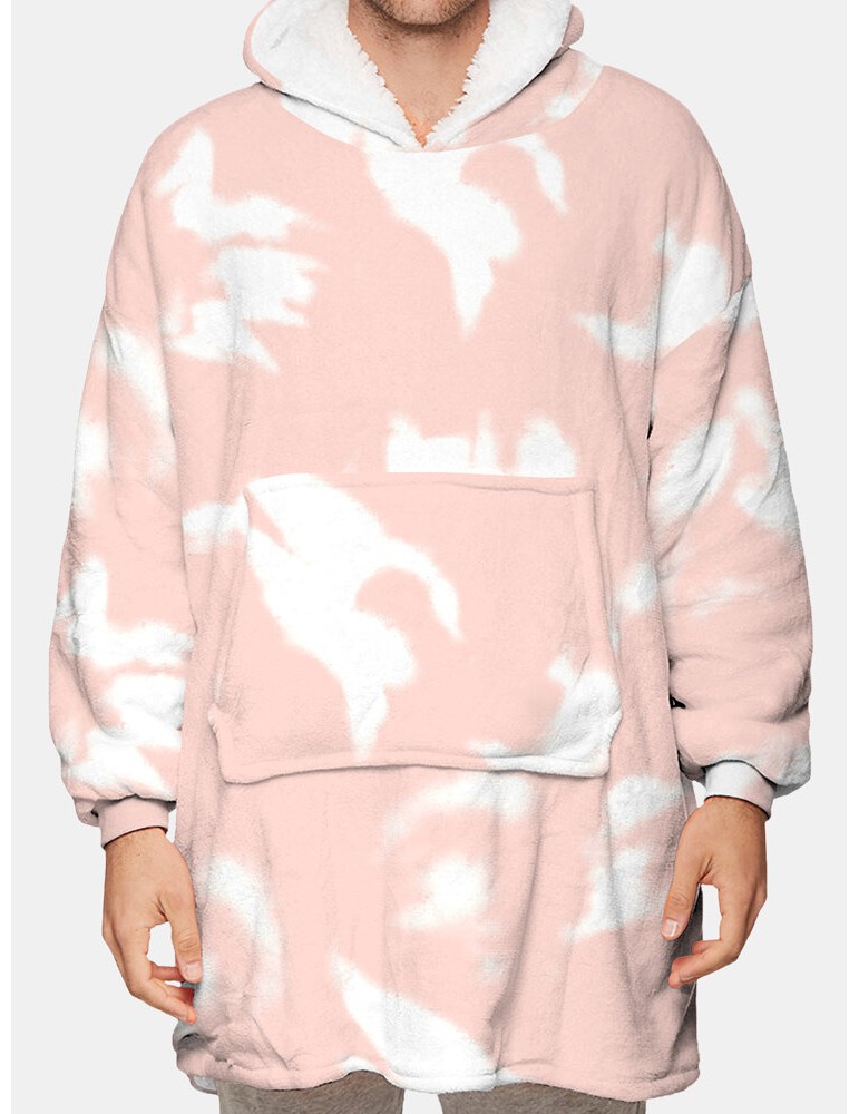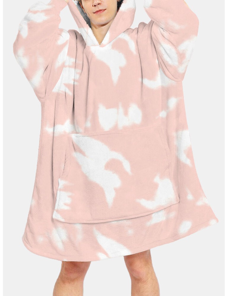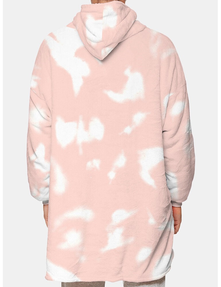 Robes - Mens Tie-Dye Thicken Fleece Lined Warm Loose Blanket Hoodie With Kangaroo Pocket