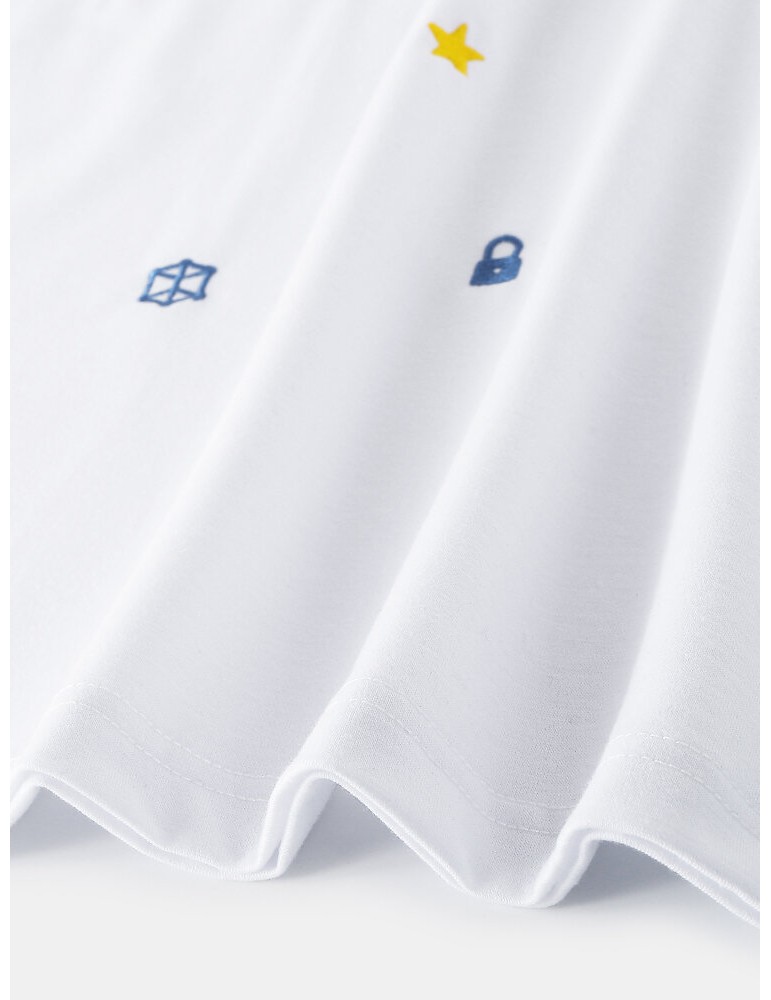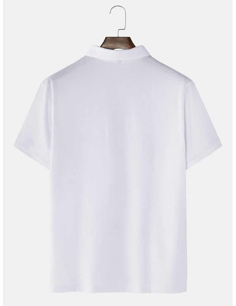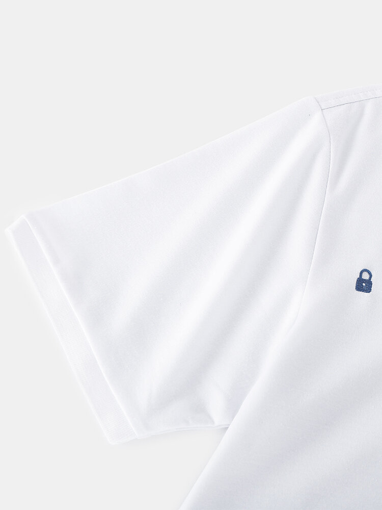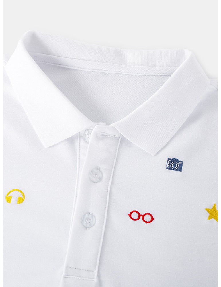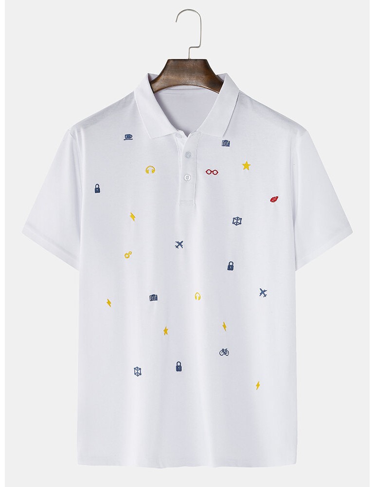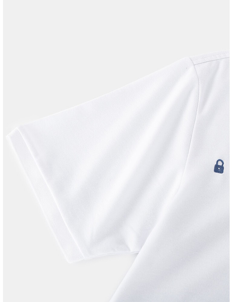 Golf Shirts - 100% Cotton Mens Simple Cartoon Embroidery Short Sleeve White Casual Golf Shirts