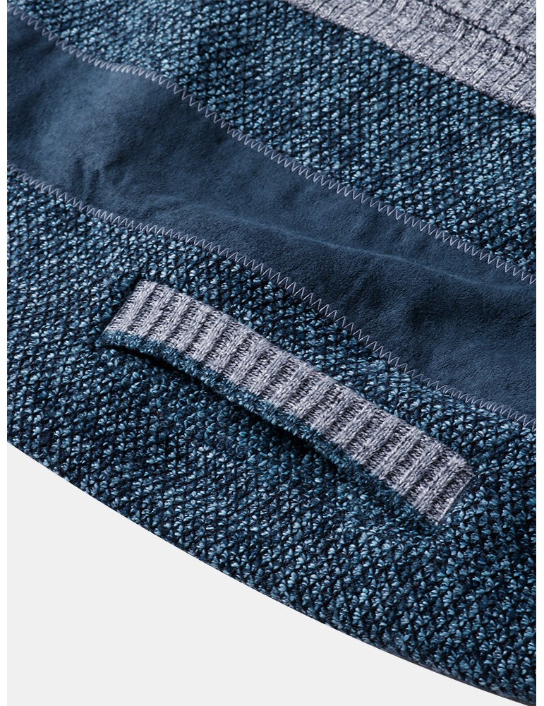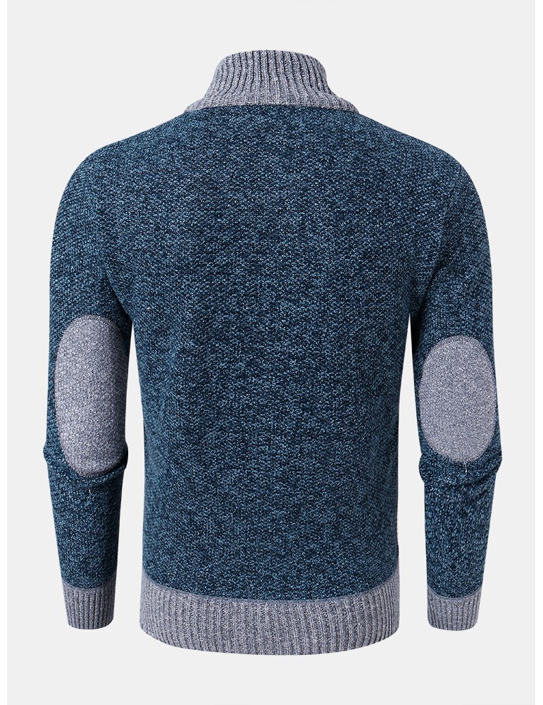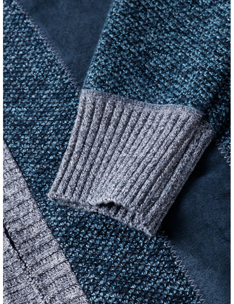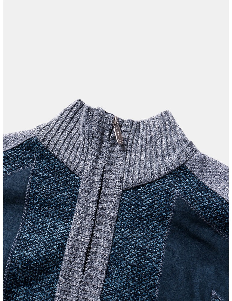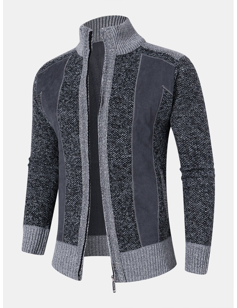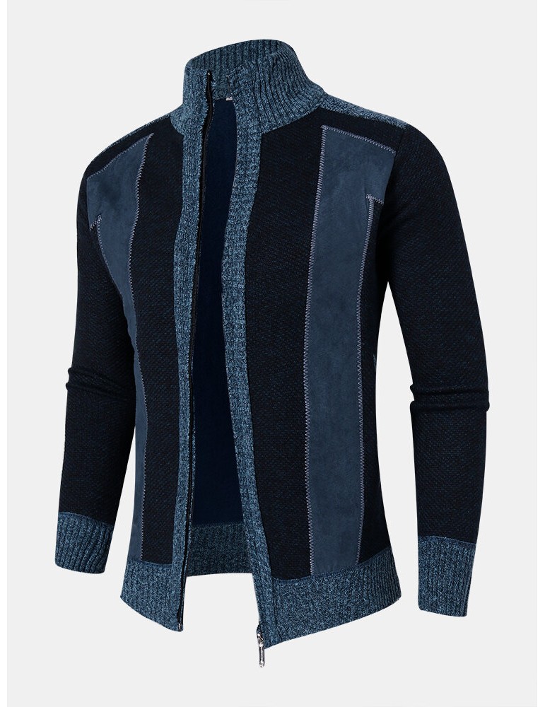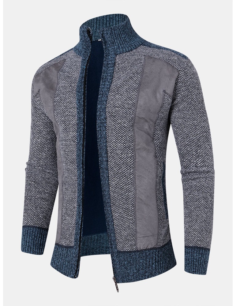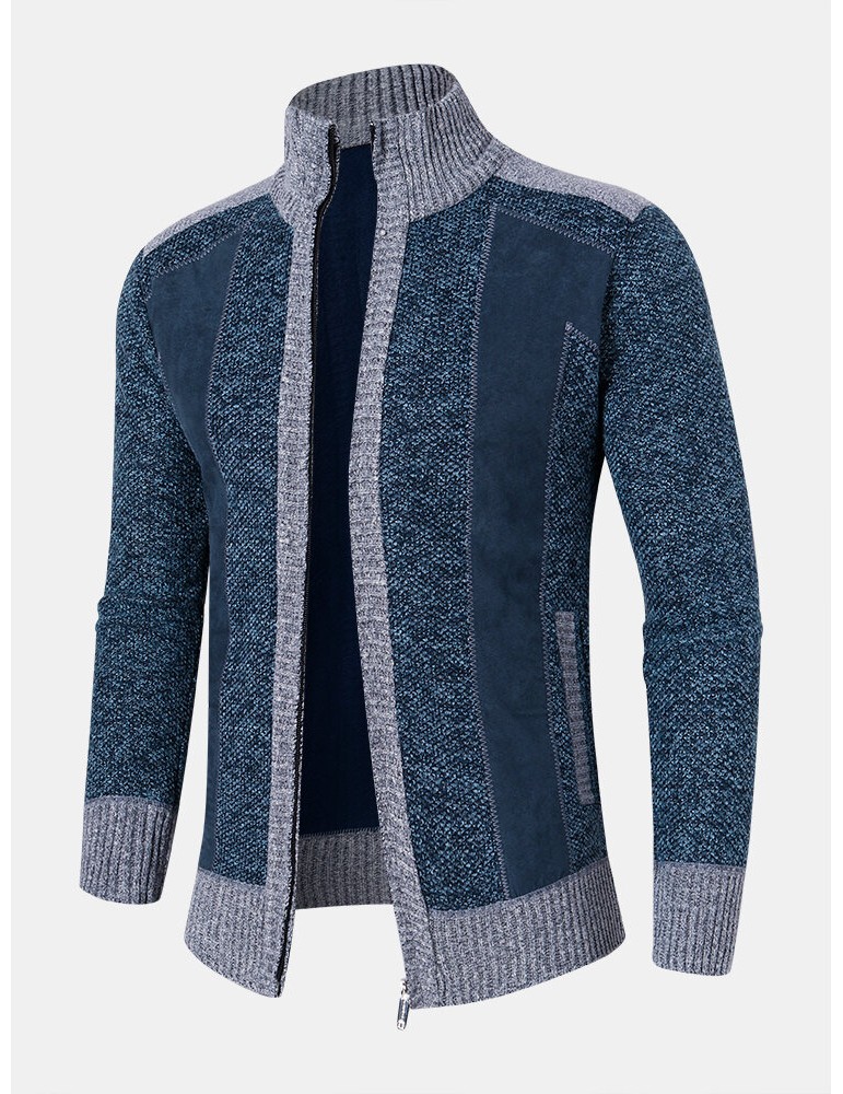 Cardigans - Men Stitching Knit Zipper Stand Collar Casual Cardigans