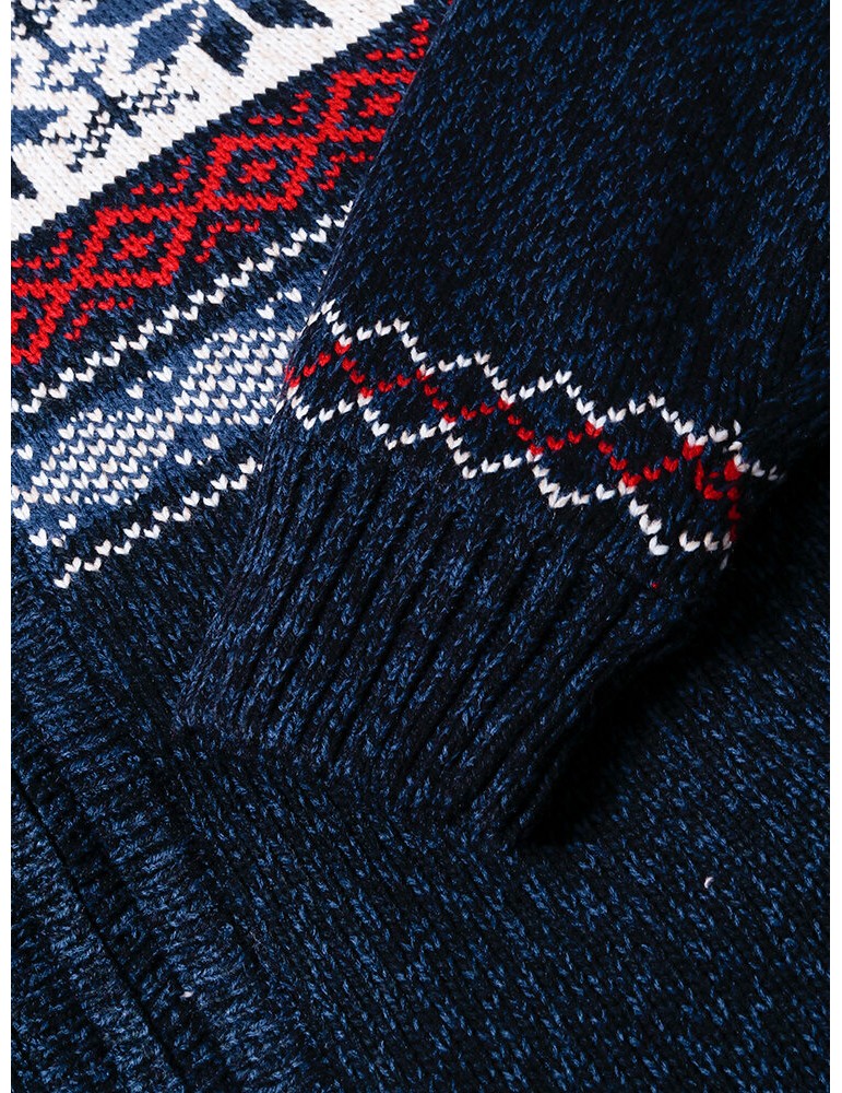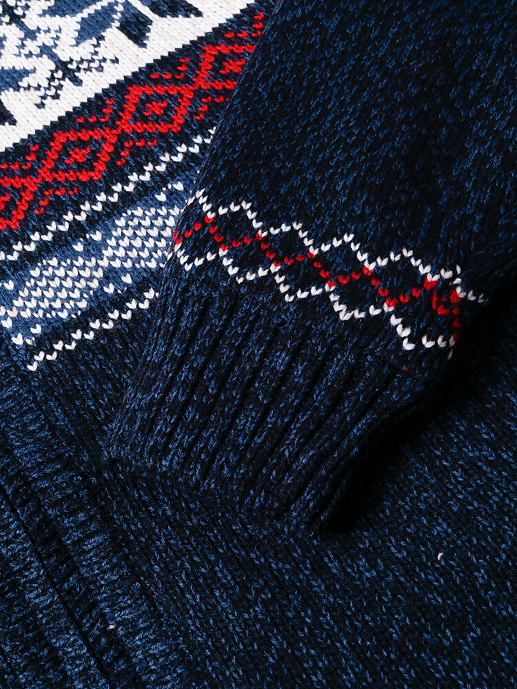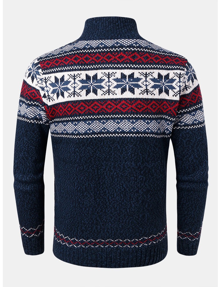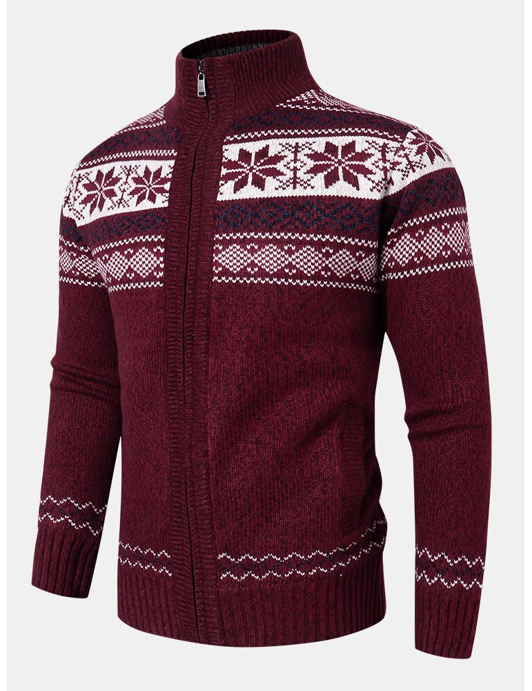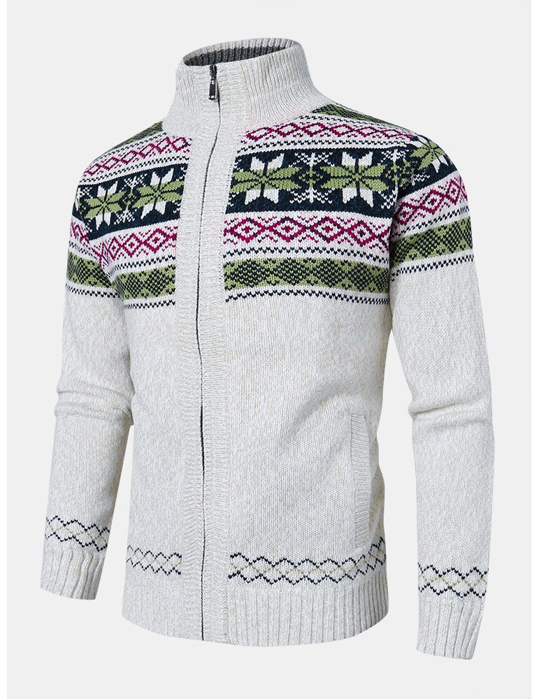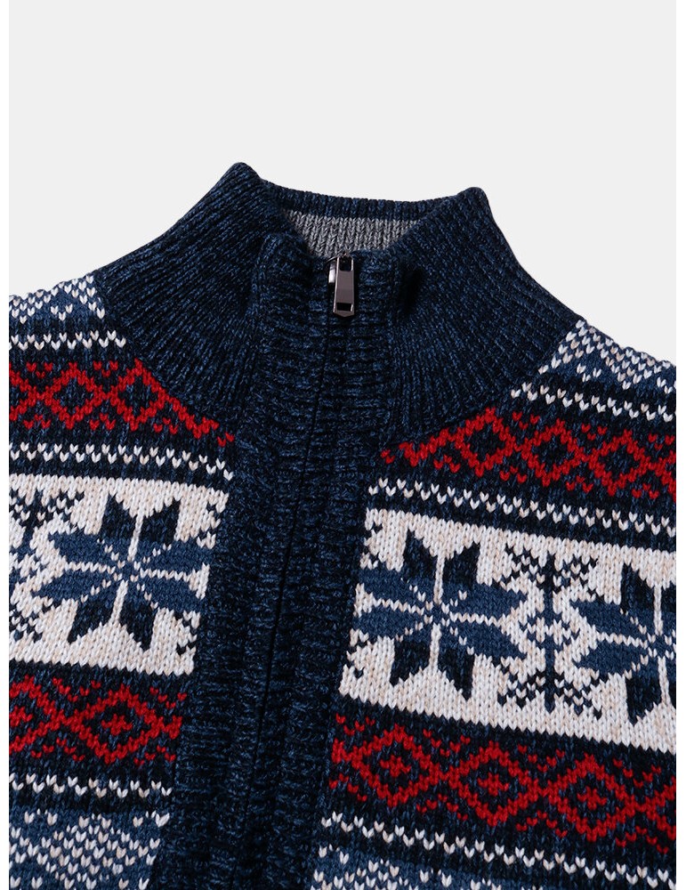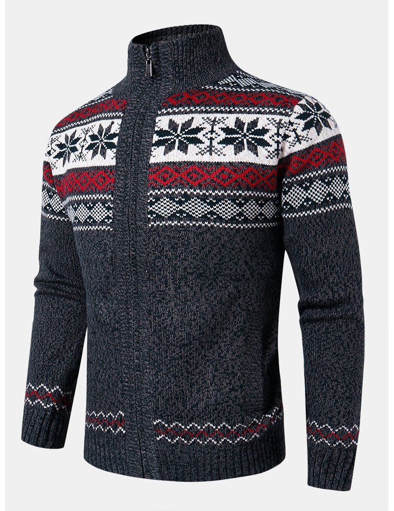 Cardigans - Mens Geometric Graphics Knitted Fleece Lined Warm Sweater Cardigans