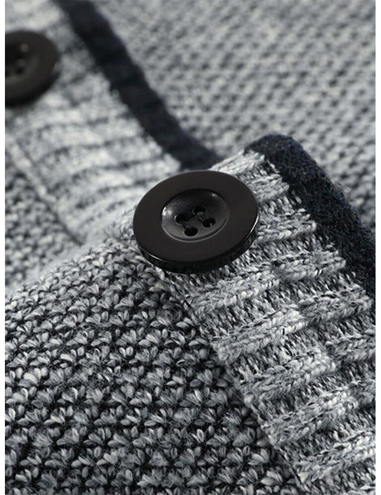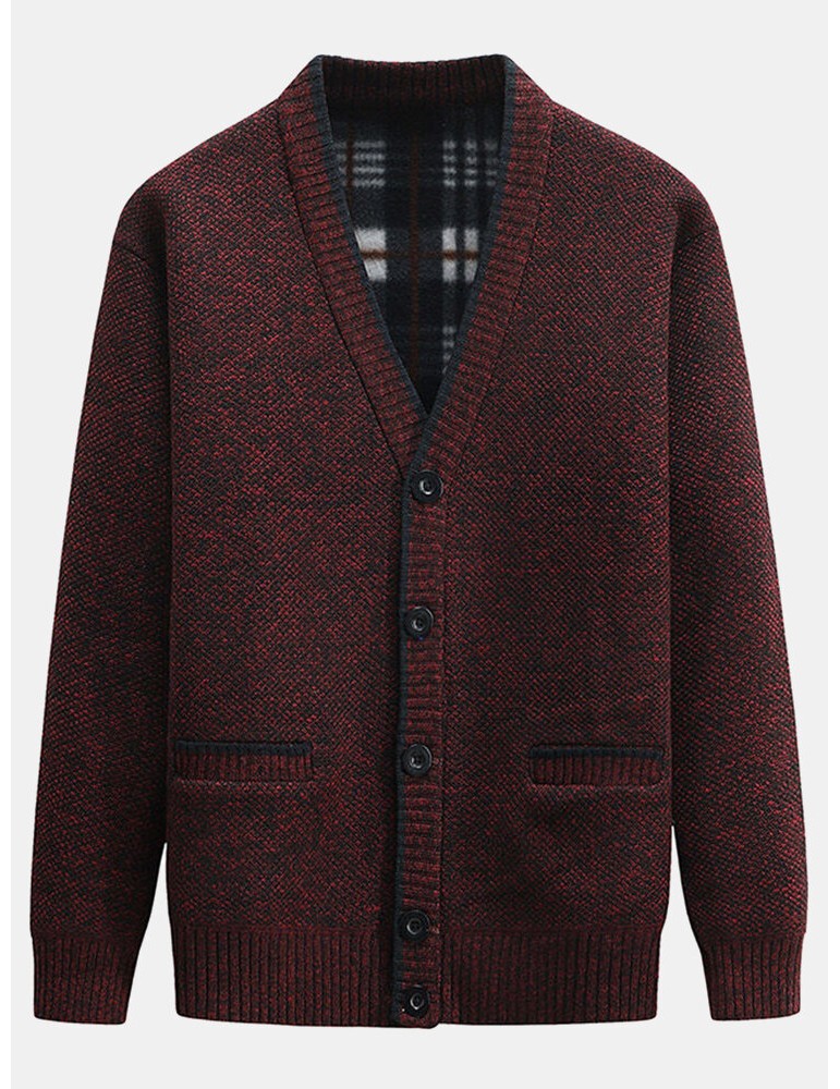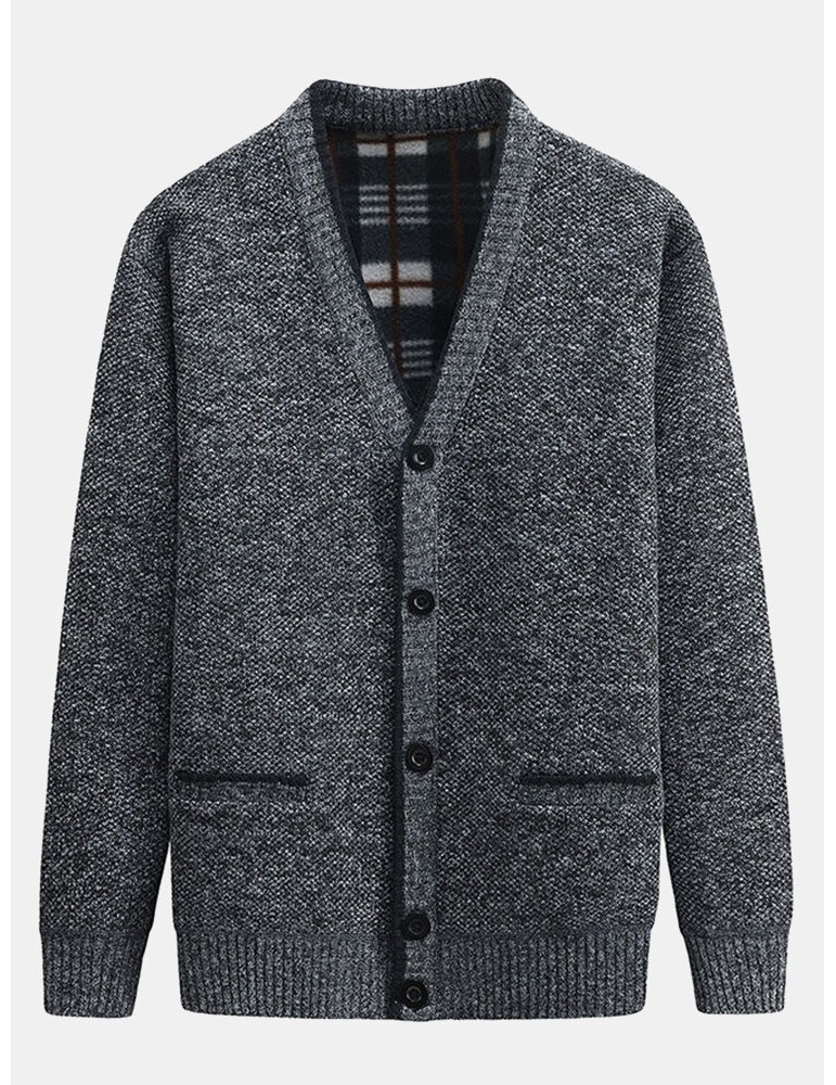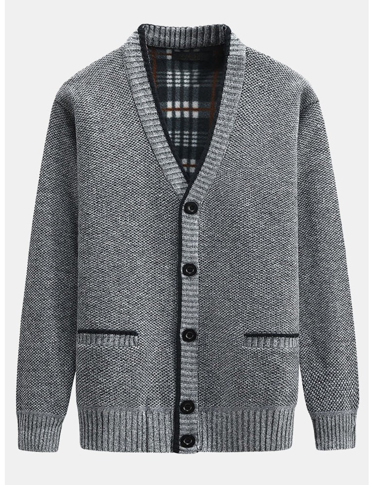 Cardigans - Mens Knit Ribbed Button Front V-Neck Casual Double Pocket Thick Cardigans