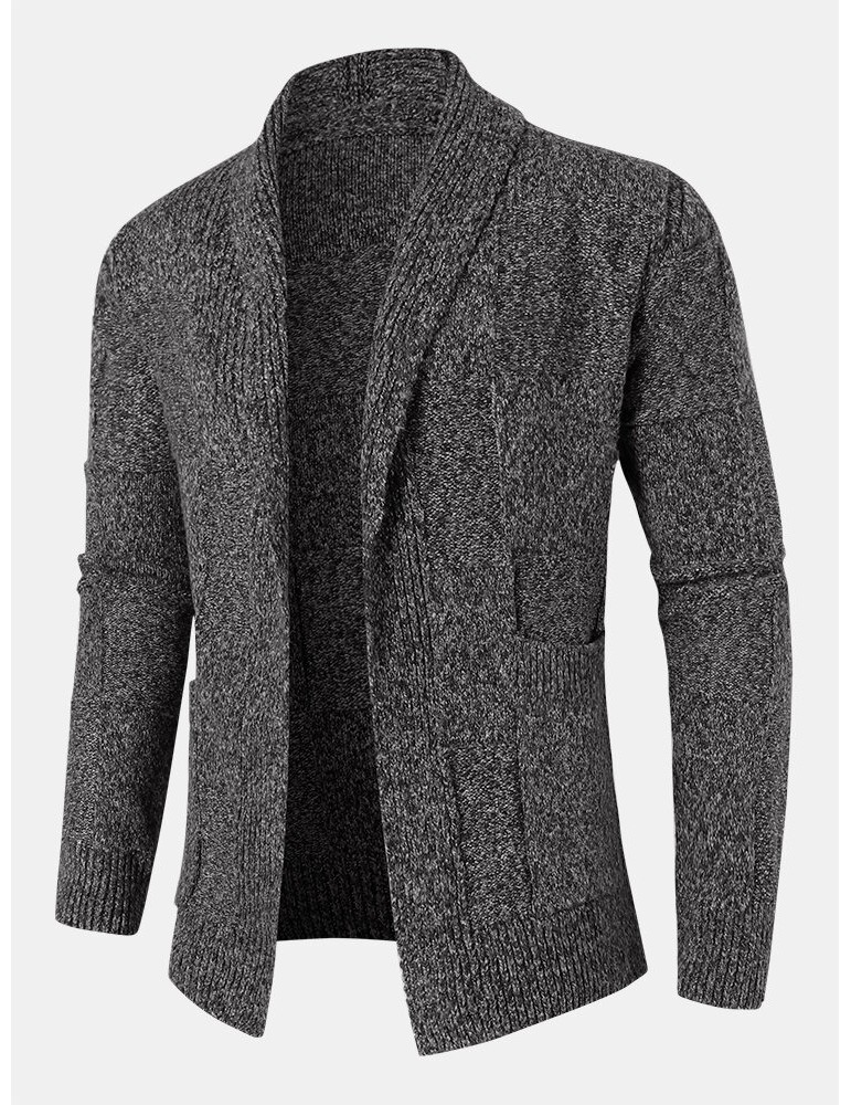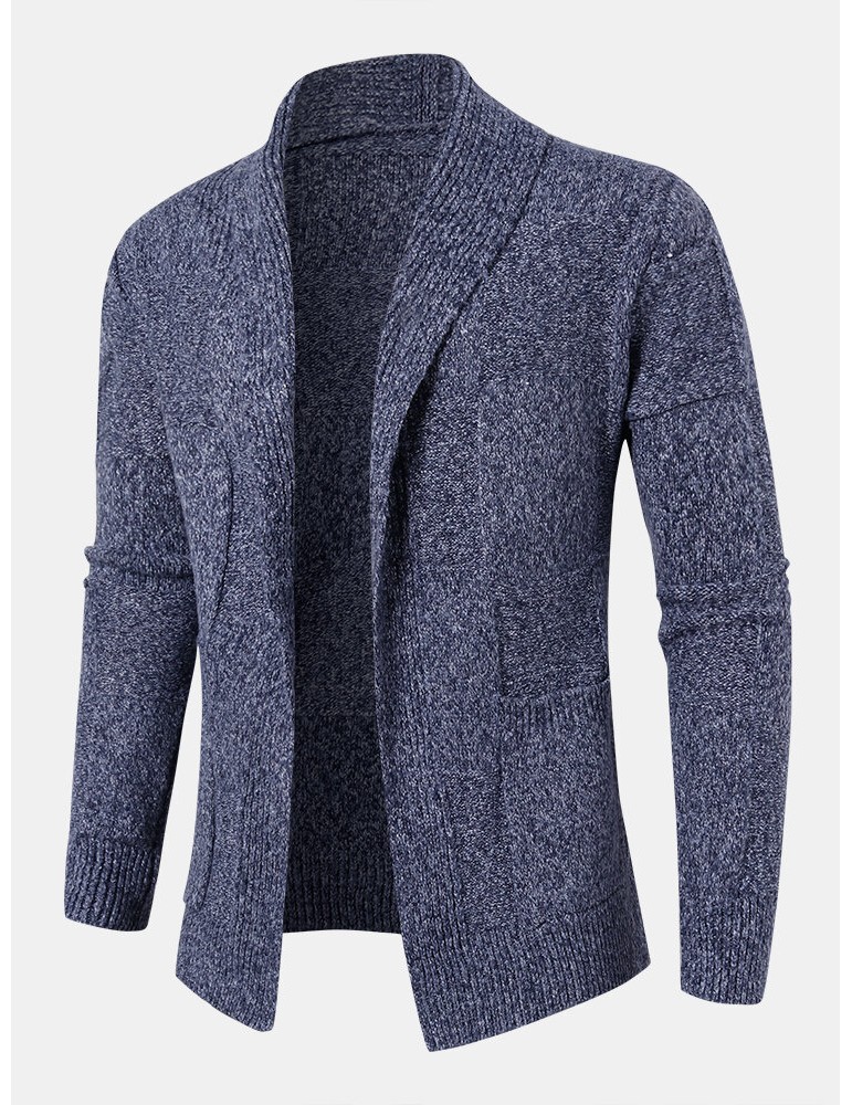 Cardigans - Mens Open Front Solid Color Knitted Long Sleeve Sweater Cardigans With Pocket