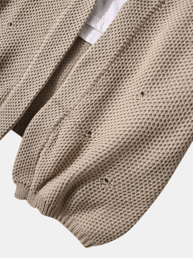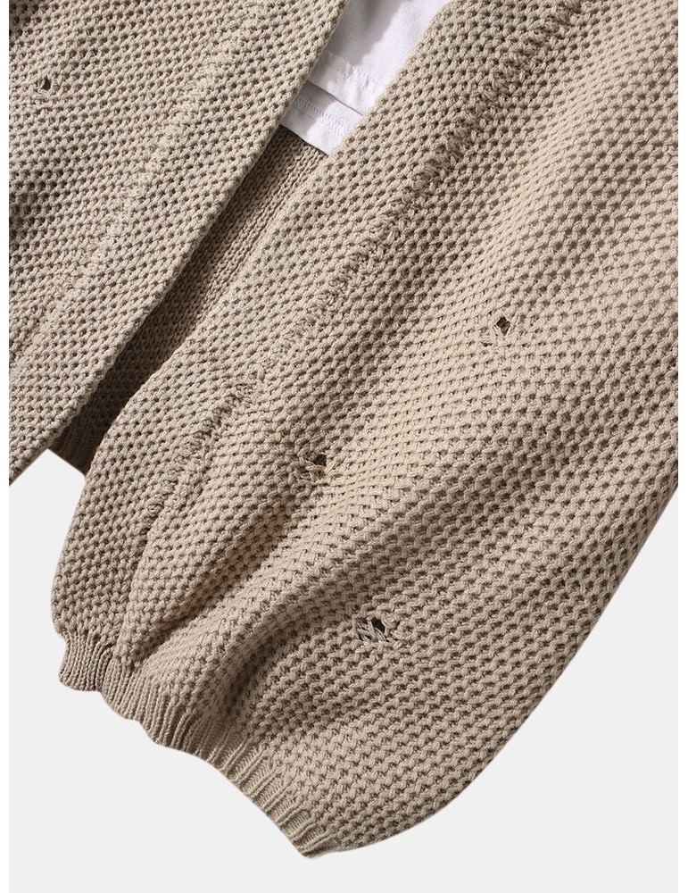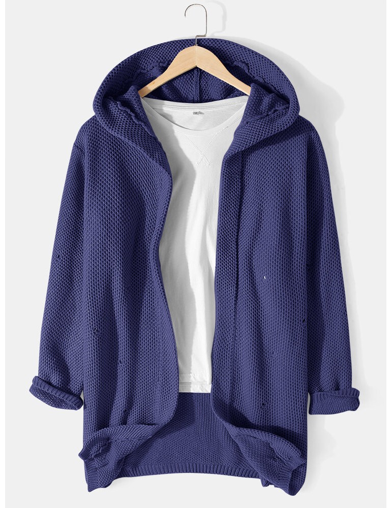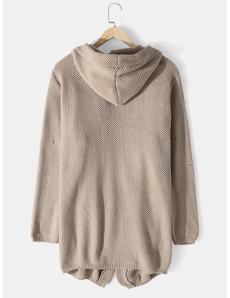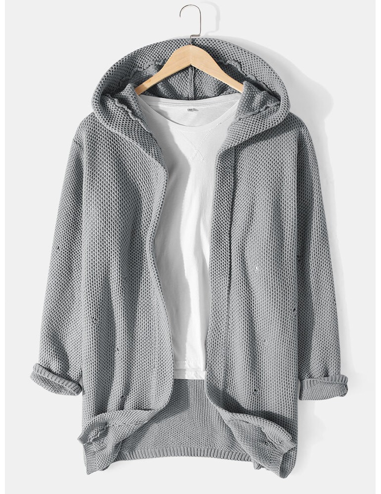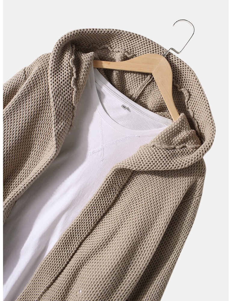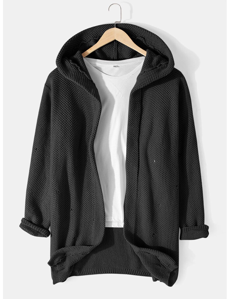 Cardigans - Mens Solid Color Open Front Knitting Hooded Sweater Cardigans