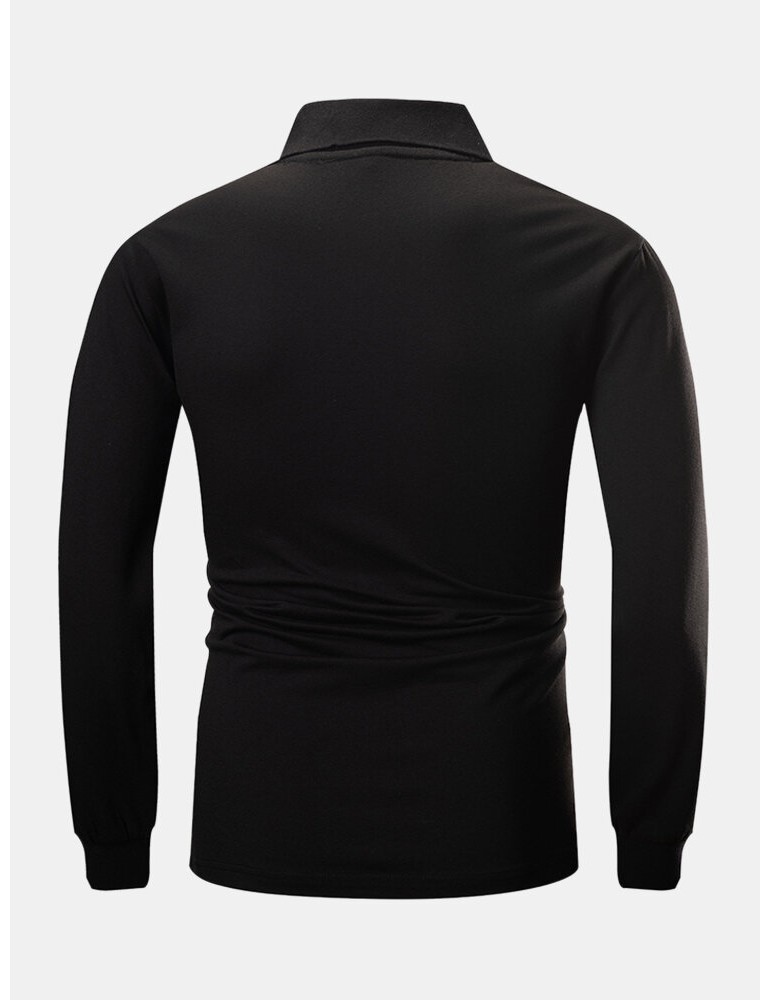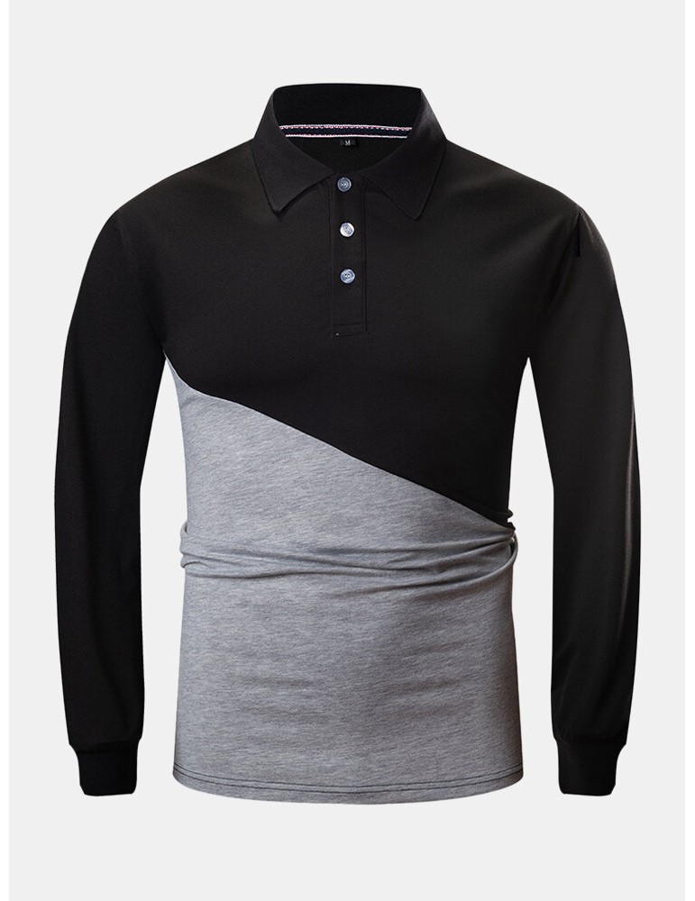 Golf Shirts - Mens Two Tone Stitching 100% Cotton Long Sleeve Casual Golf Shirts