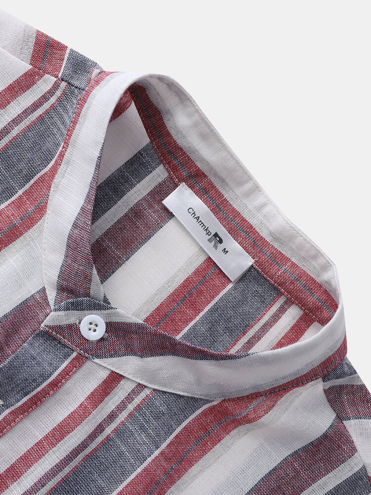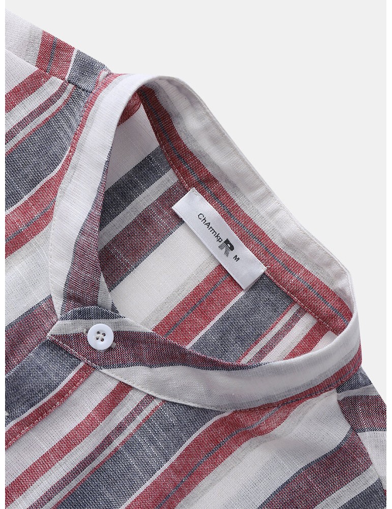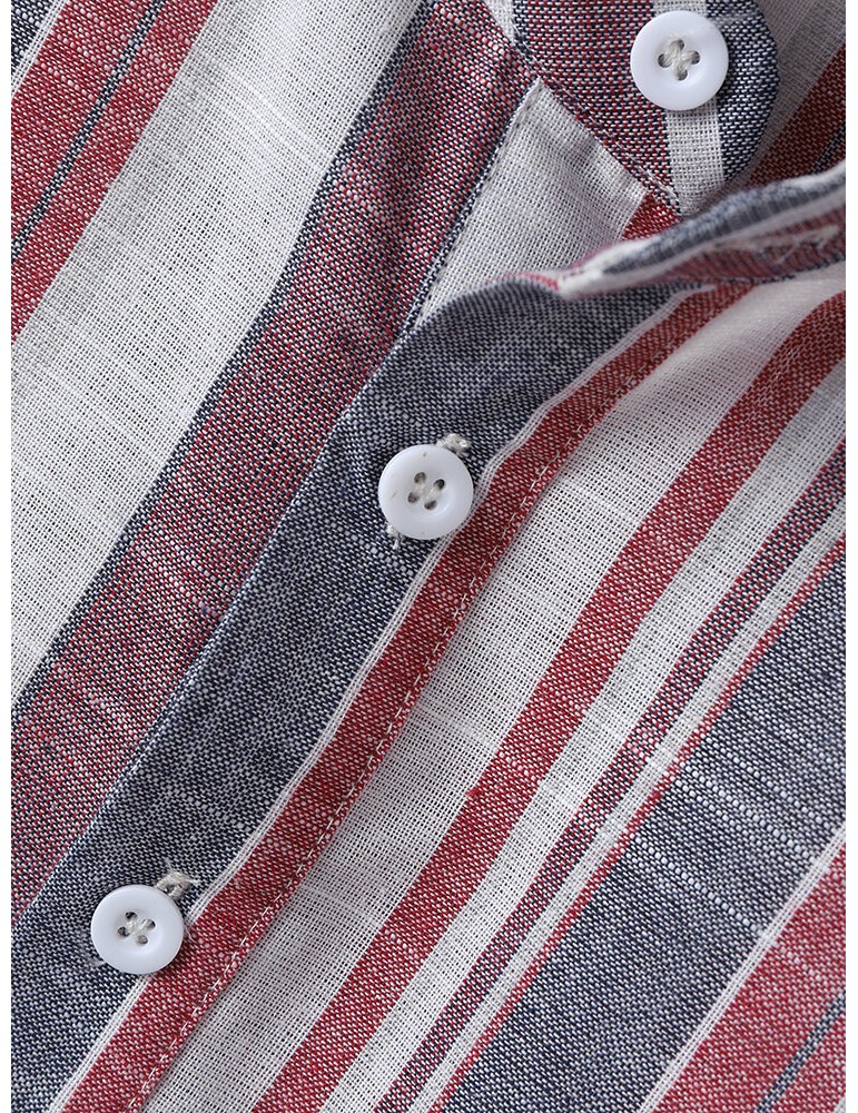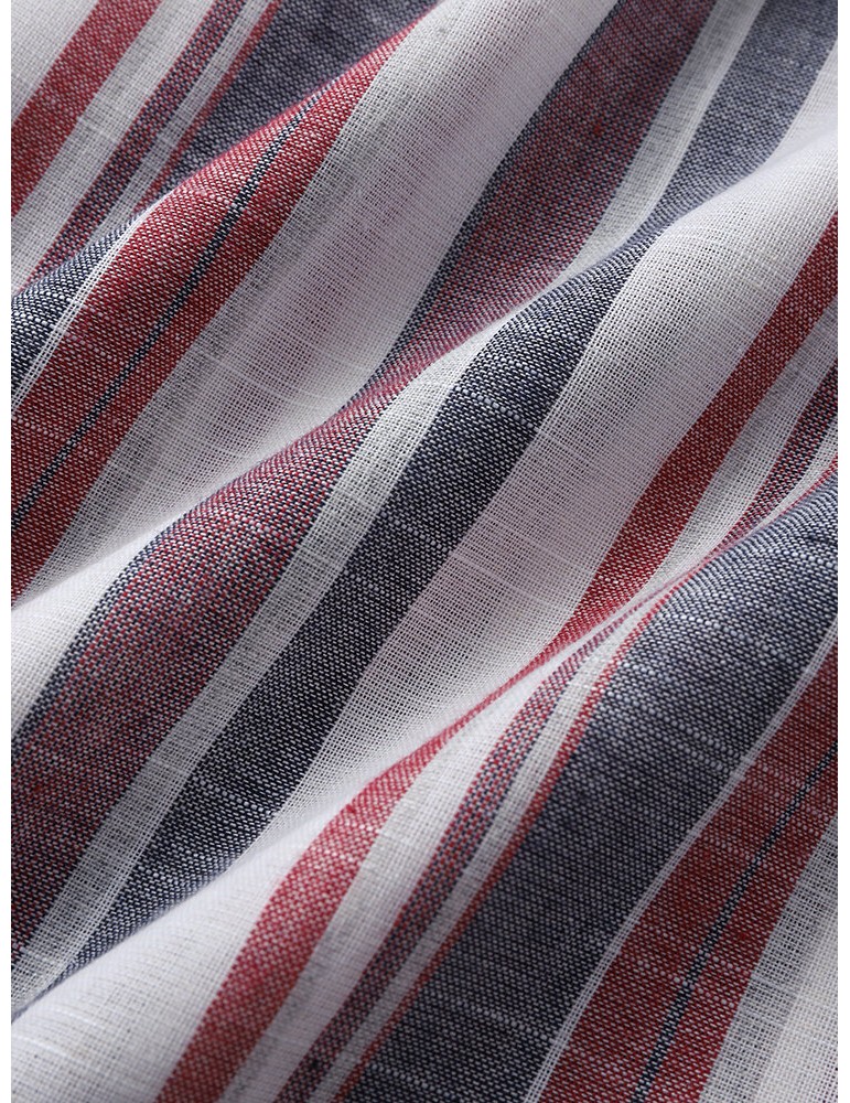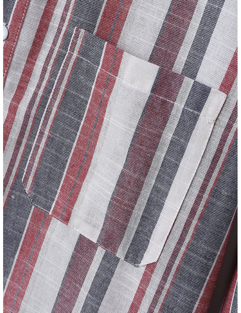 Robes - Men Striped Chest Pocket High Low Hem Casual Night Robe