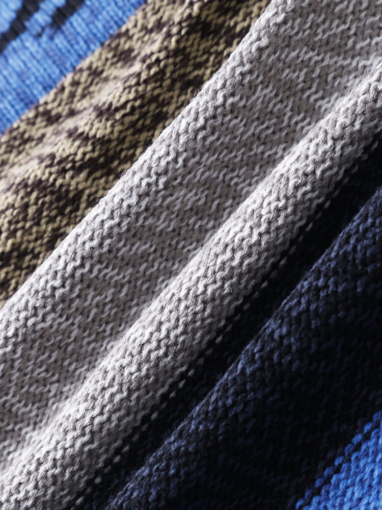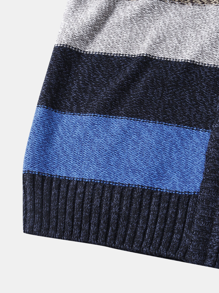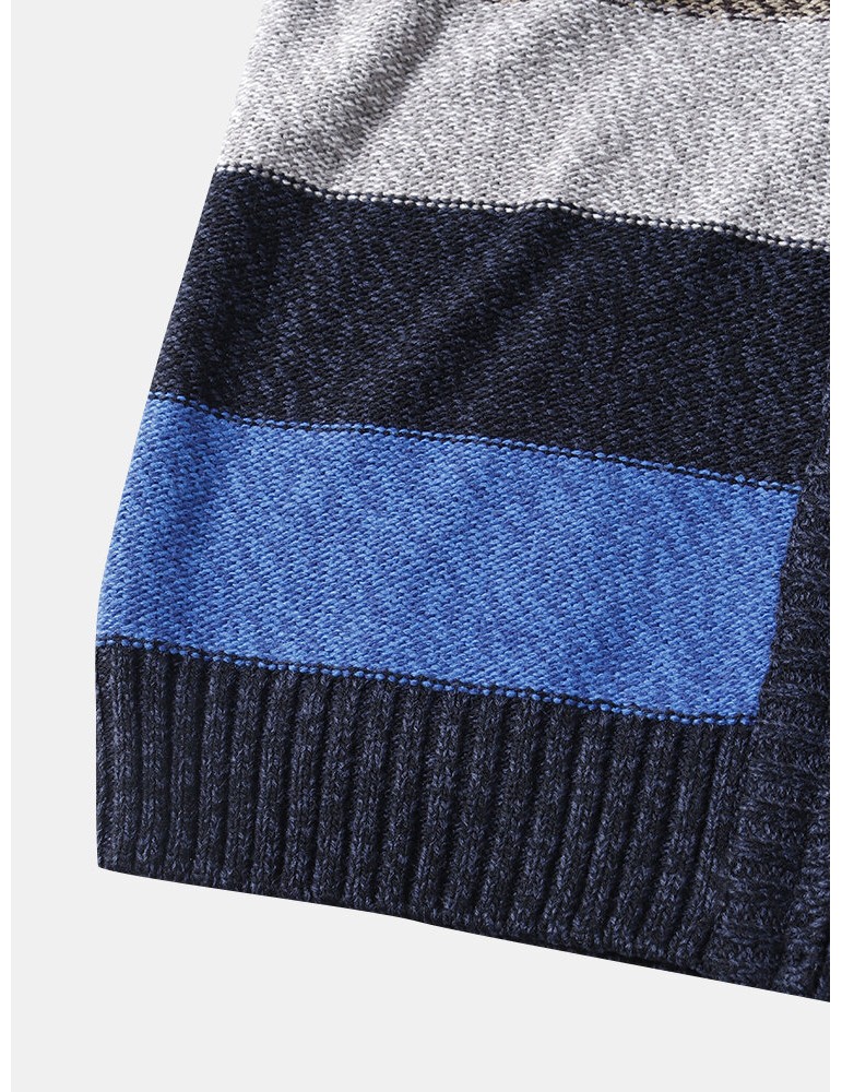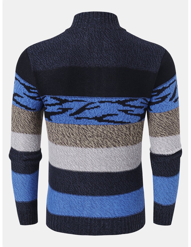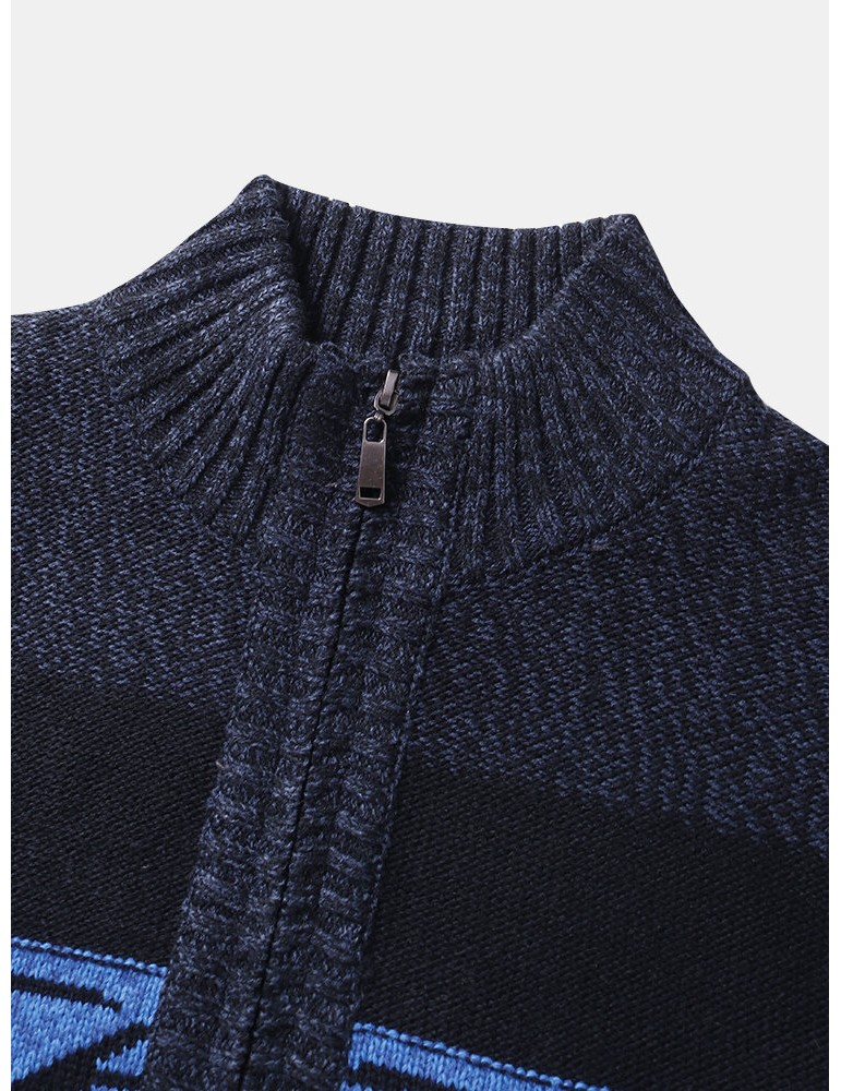 Cardigans - Men Striped Color Block Zipper Stand Collar Casual Cardigans