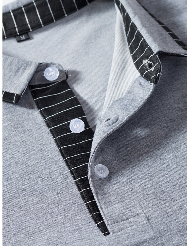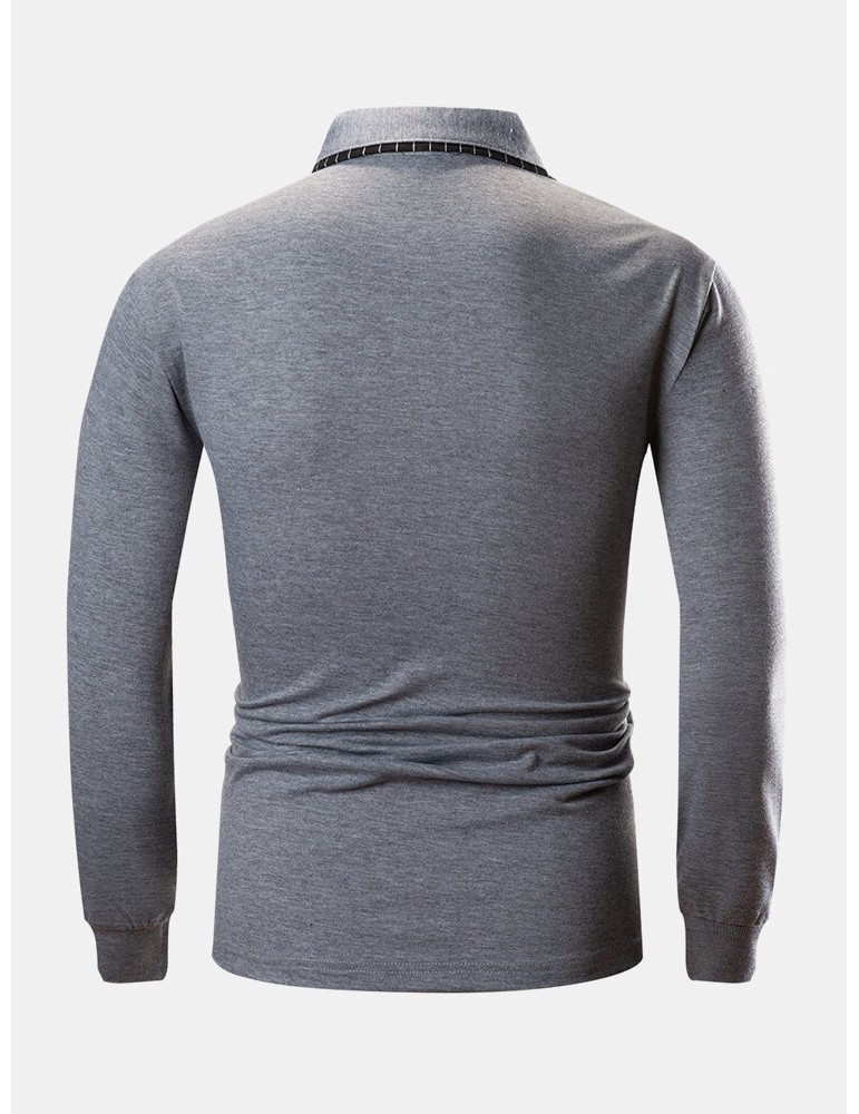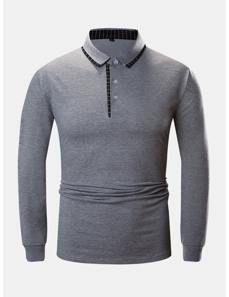 Golf Shirts - Mens 100% Cotton Stripe Collar Long Sleeve Plain Casual Golf Shirts