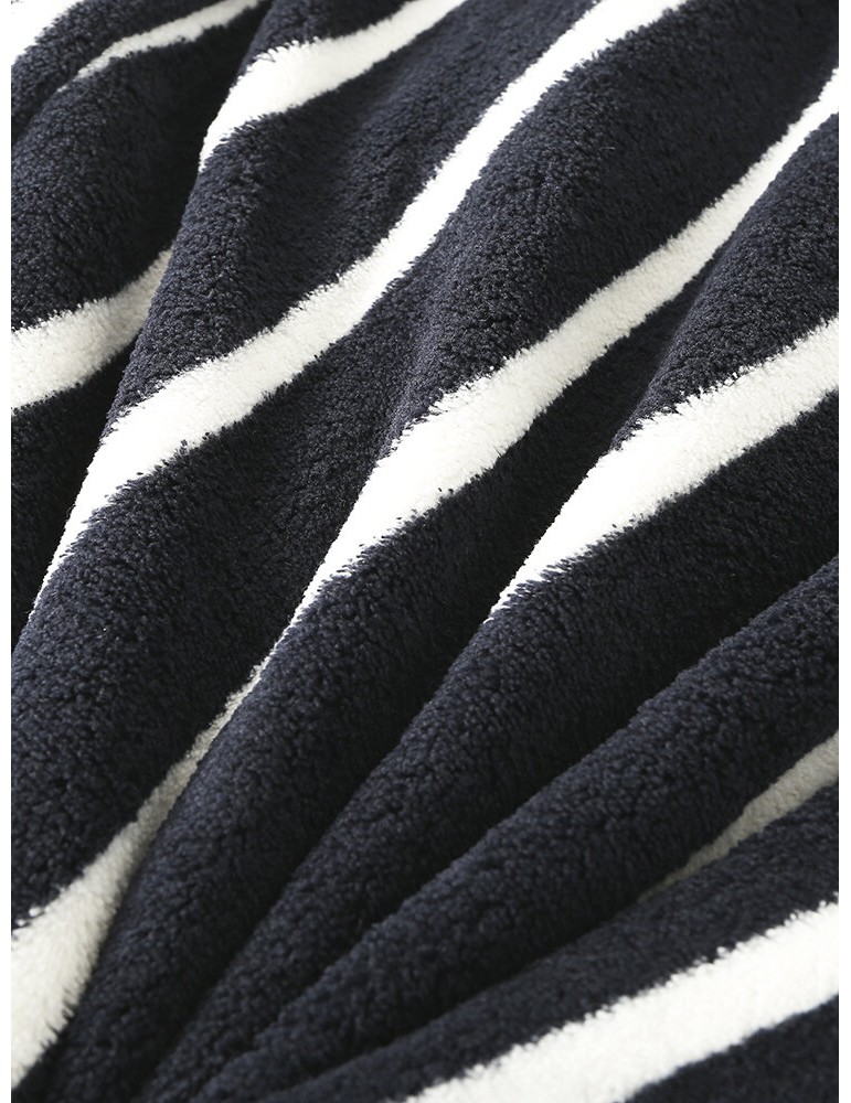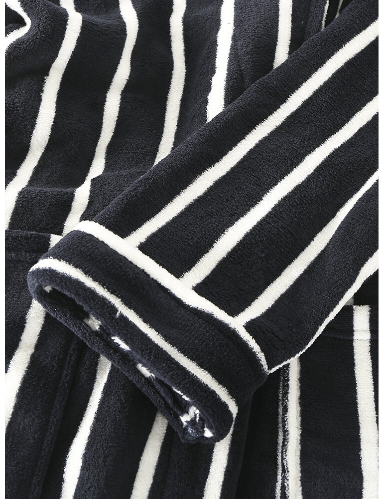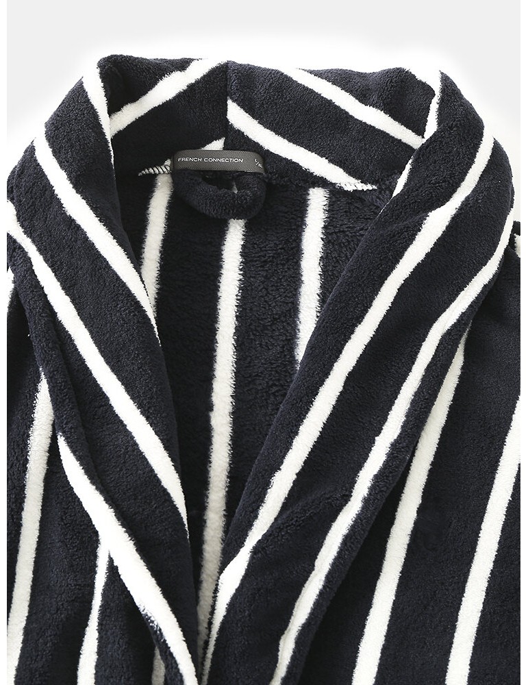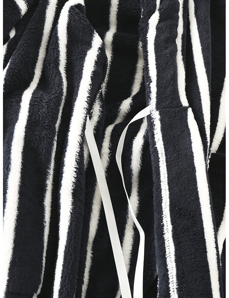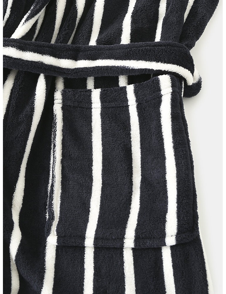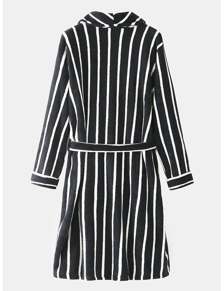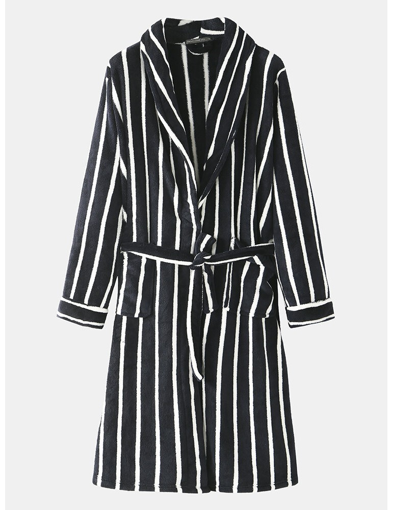 Robes - Mens Basic Striped Print Flannel Winter Thick Mid-Length Home Lounge Robes