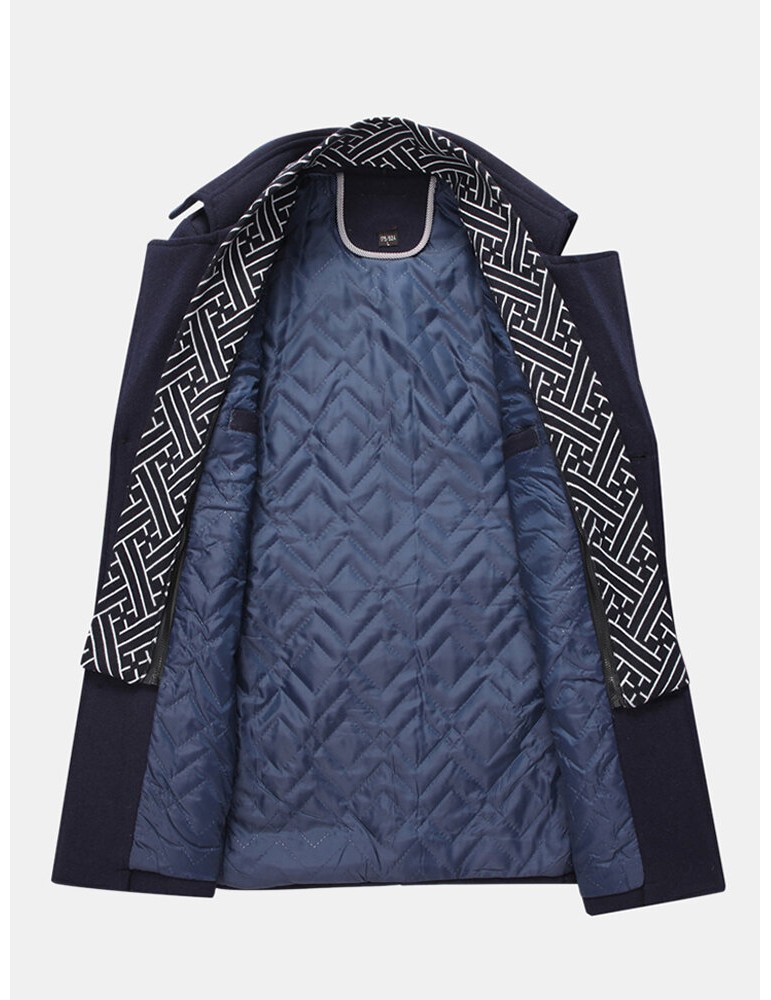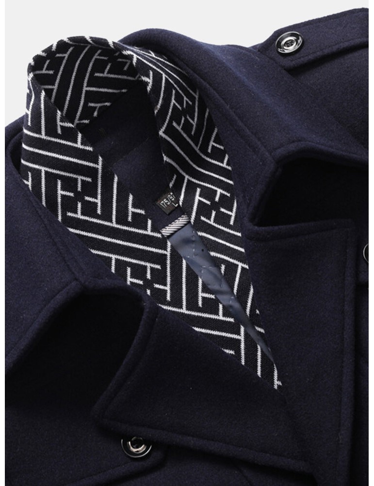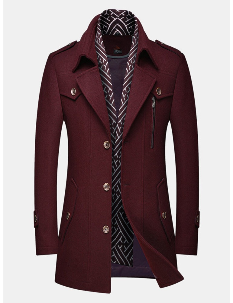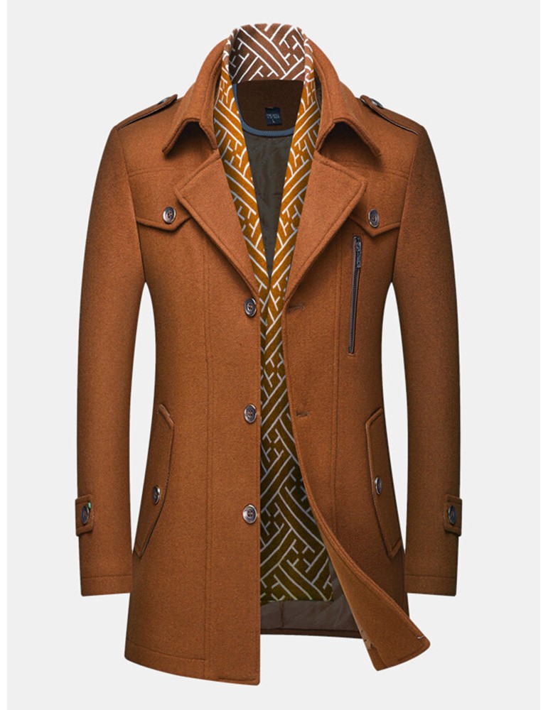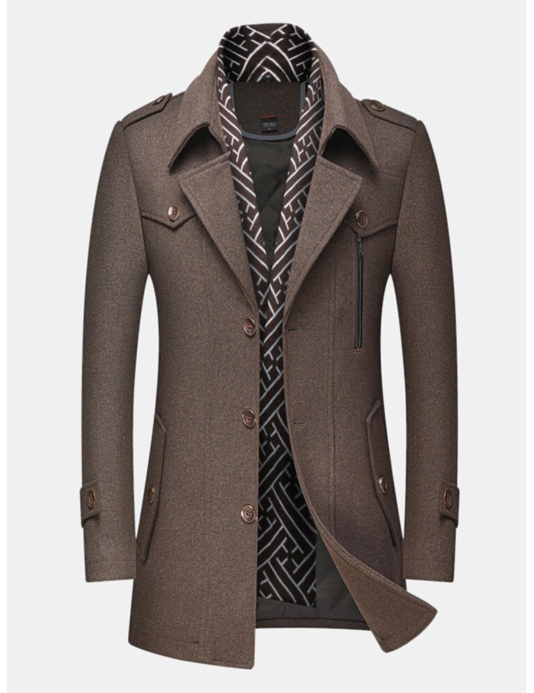Coats - Mens British Style Woolen Scarf Collar Mid-Length Thicken Warm Overcoat