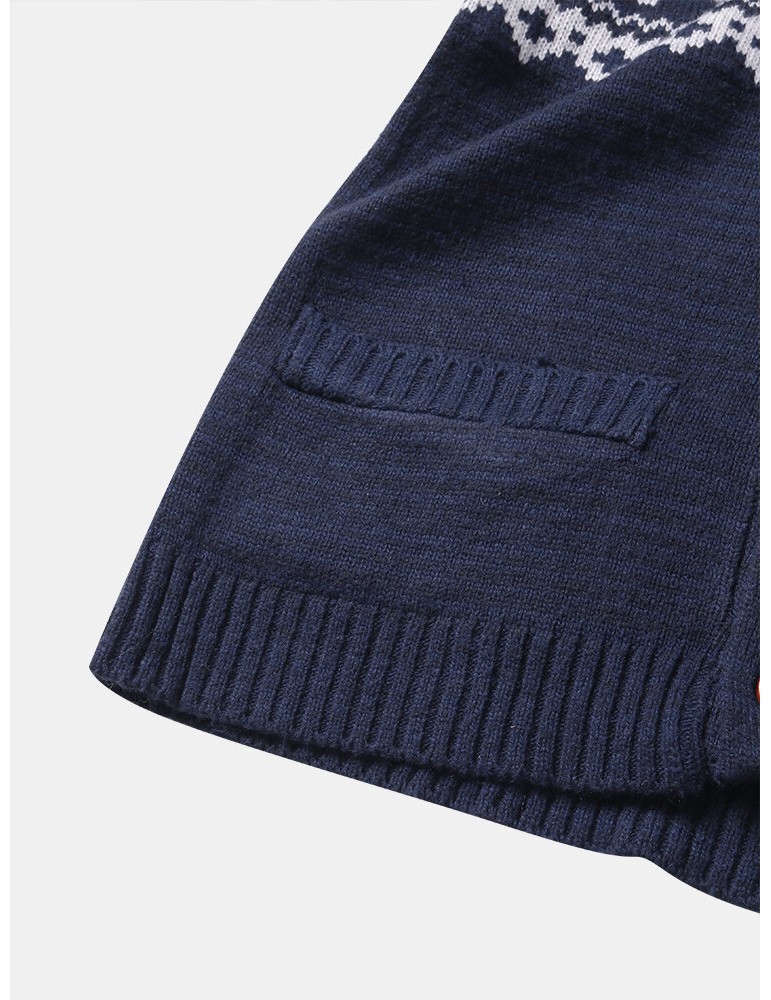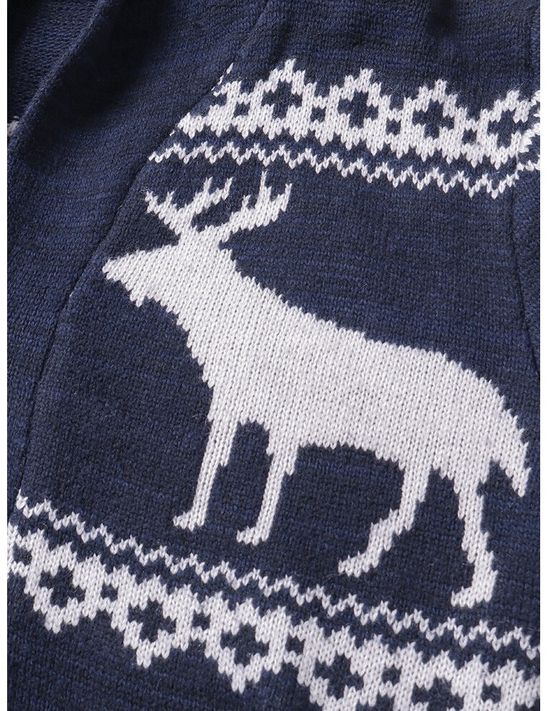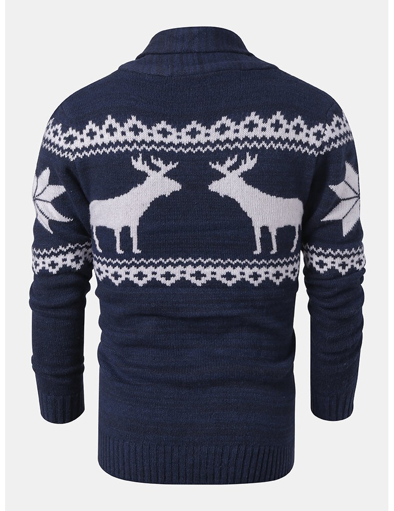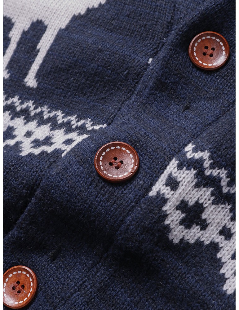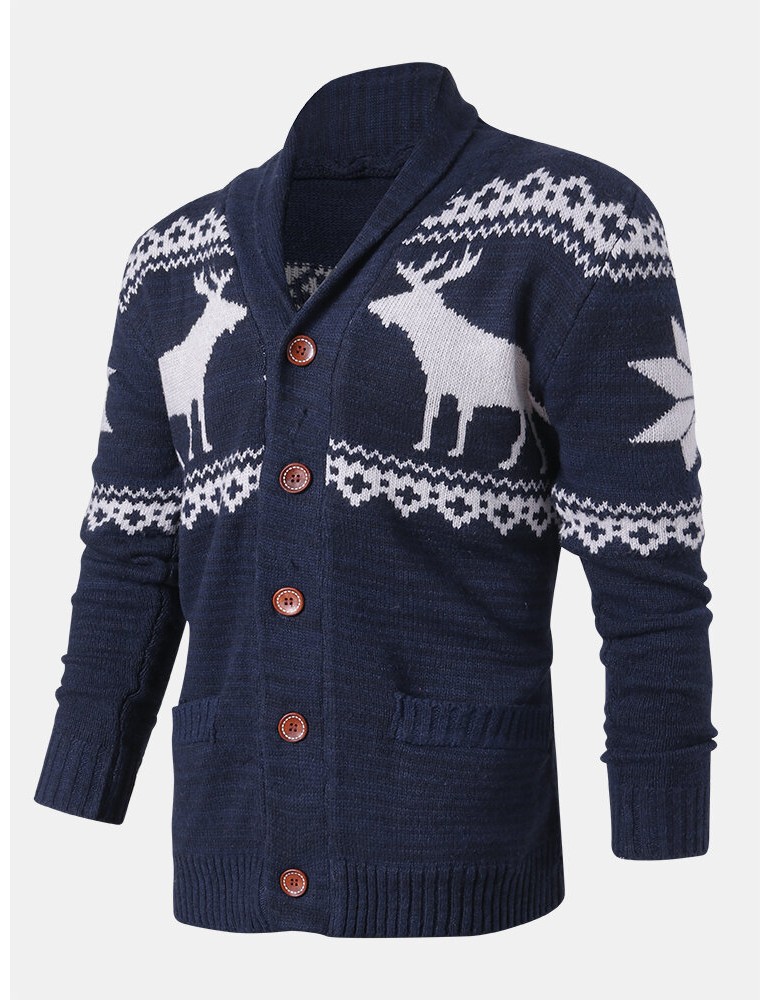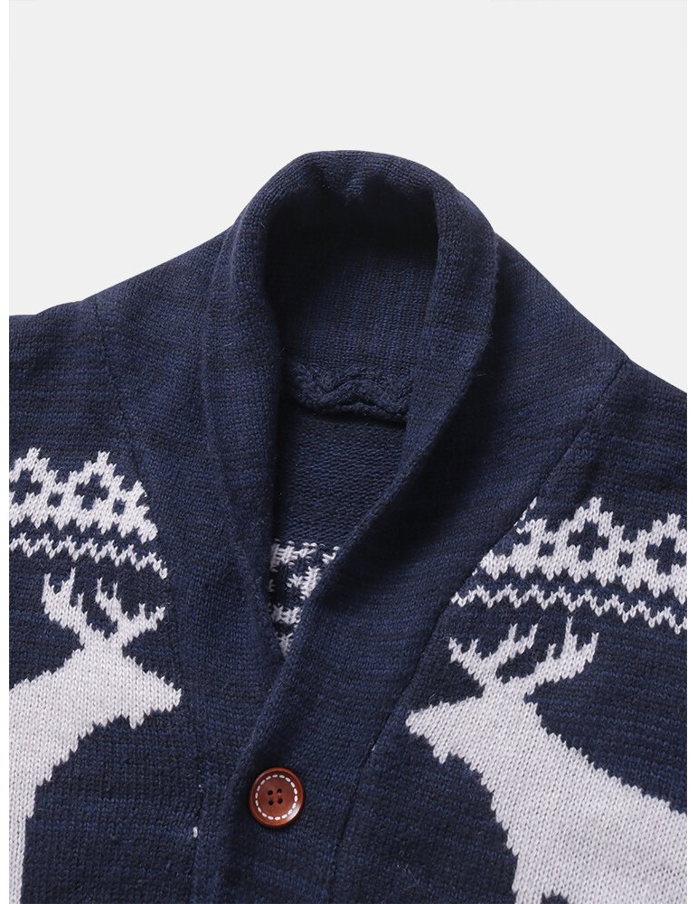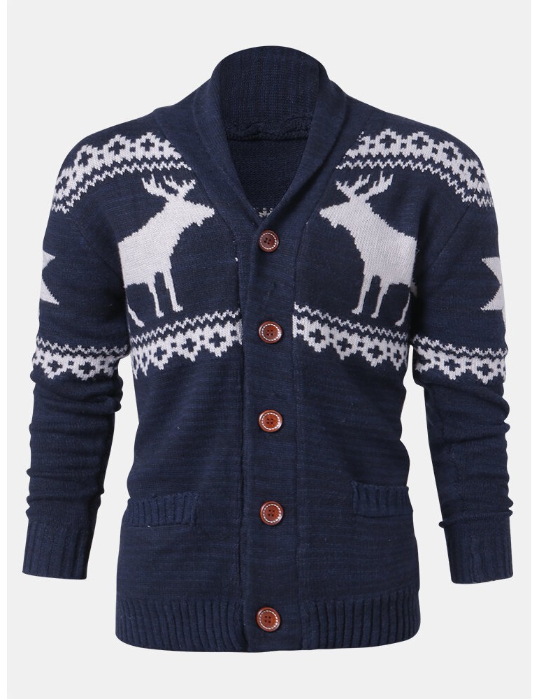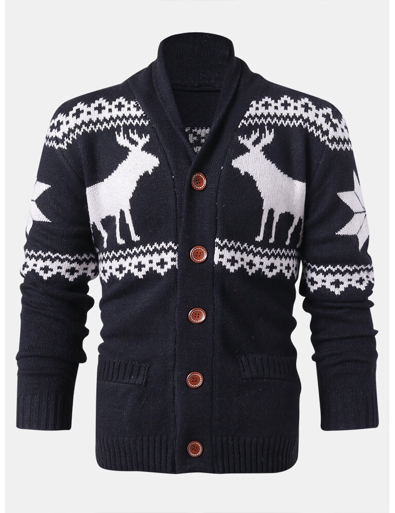 Cardigans - Mens Christmas Reindeer Button Thick Warm Casual Knitted Cardigan Sweater