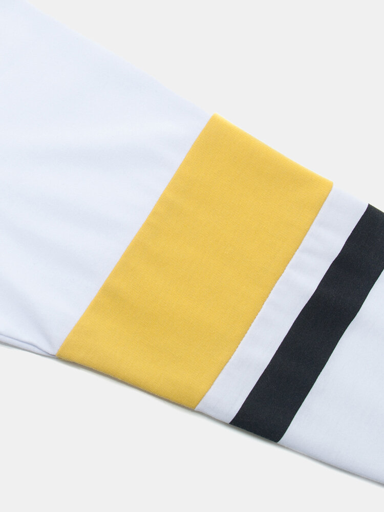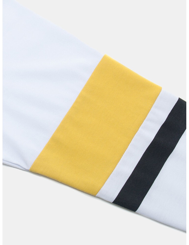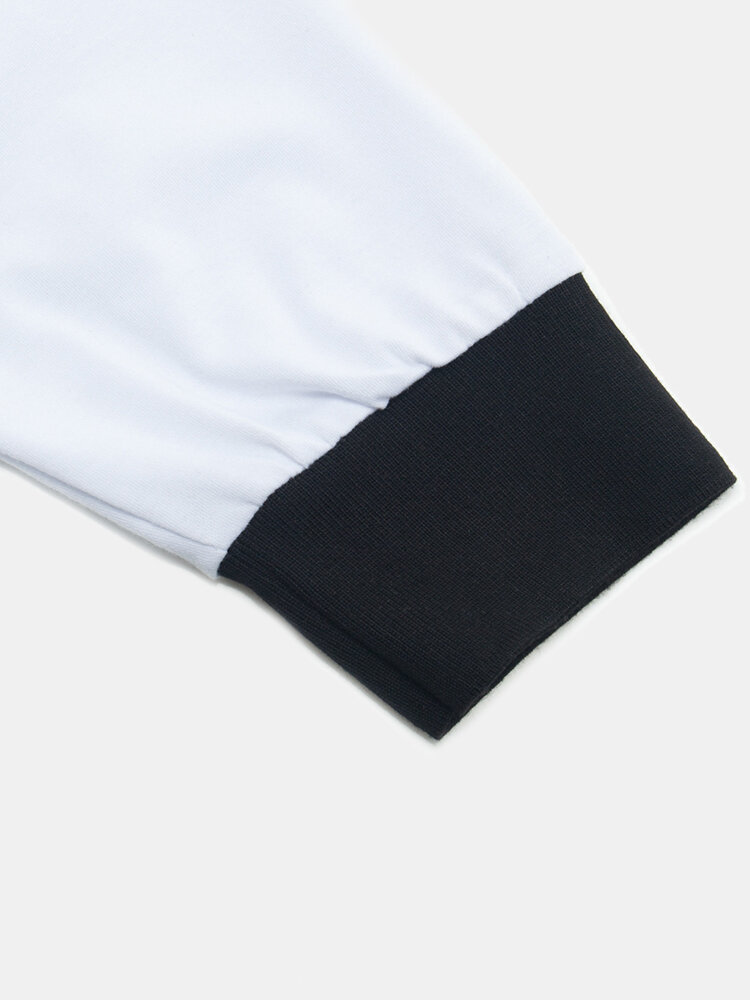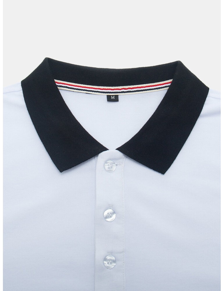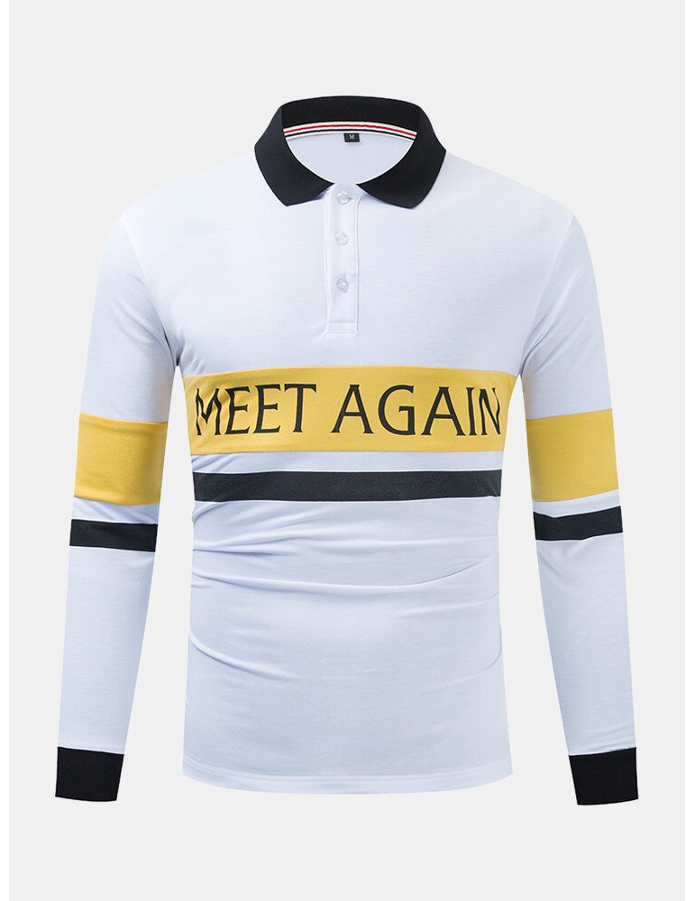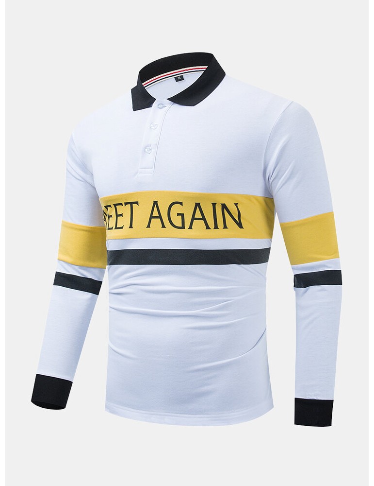 Golf Shirts - Mens Contrast Patchwork Letter Print 100% Cotton Casual Long Sleeve Golf Shirts