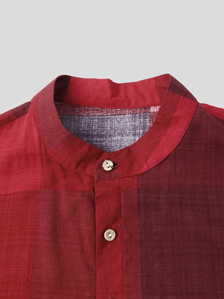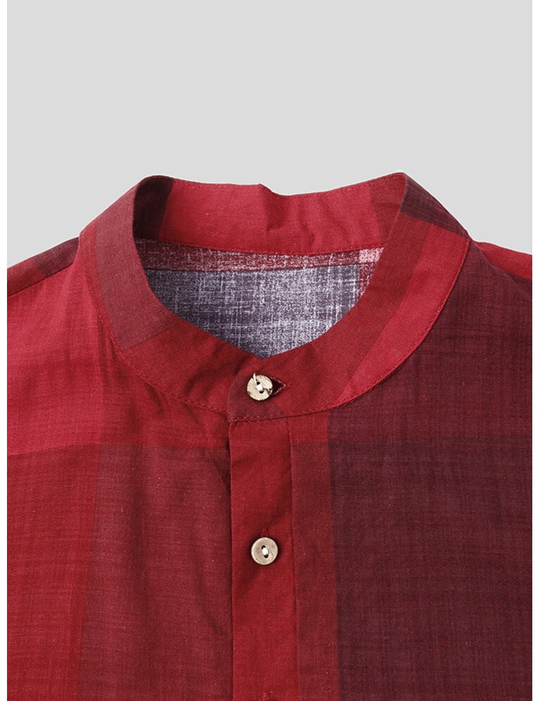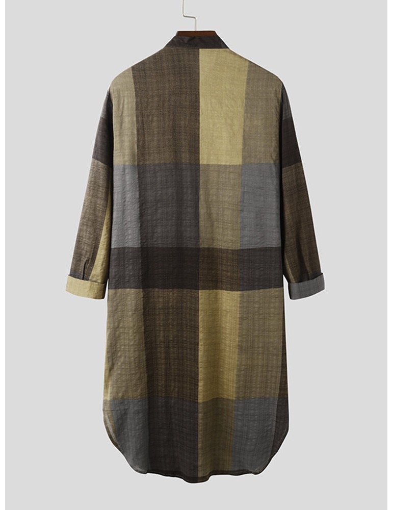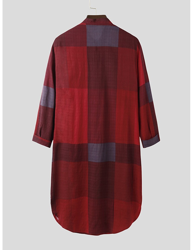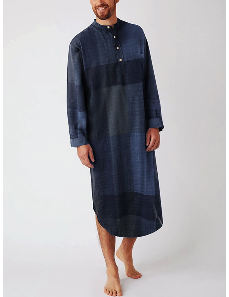 Robes - Mens Cotton Plaid Print Henley Shirts Home Sleepwear Long Sleeve Robes With Pocket