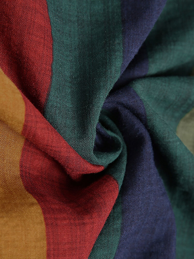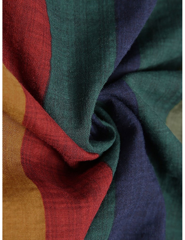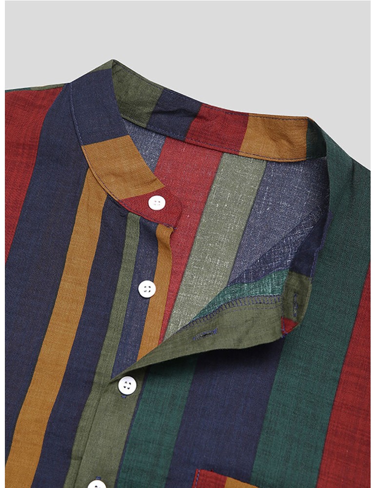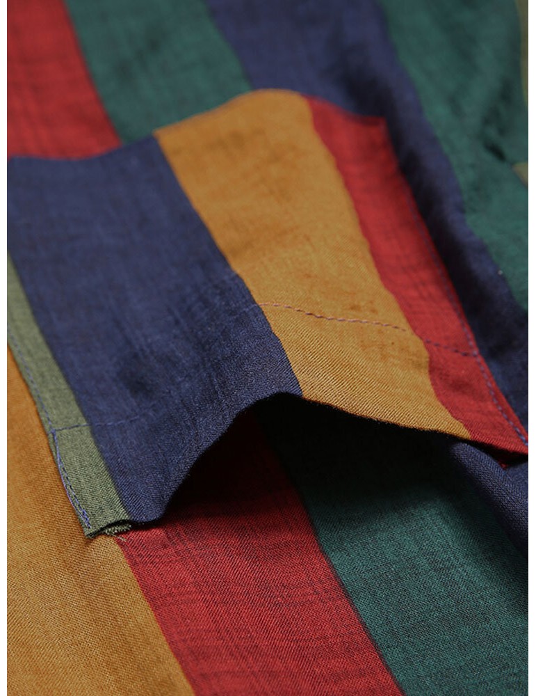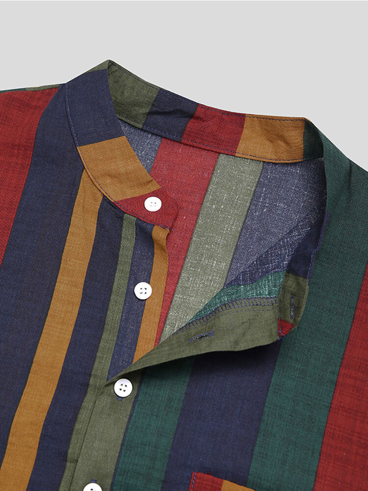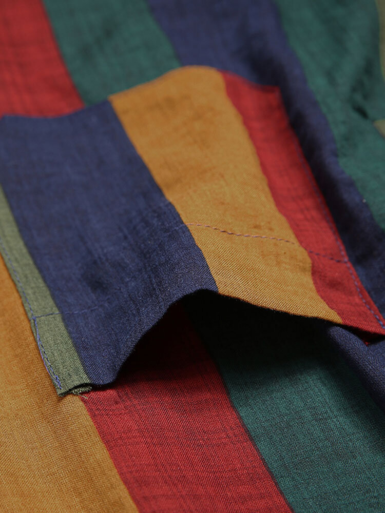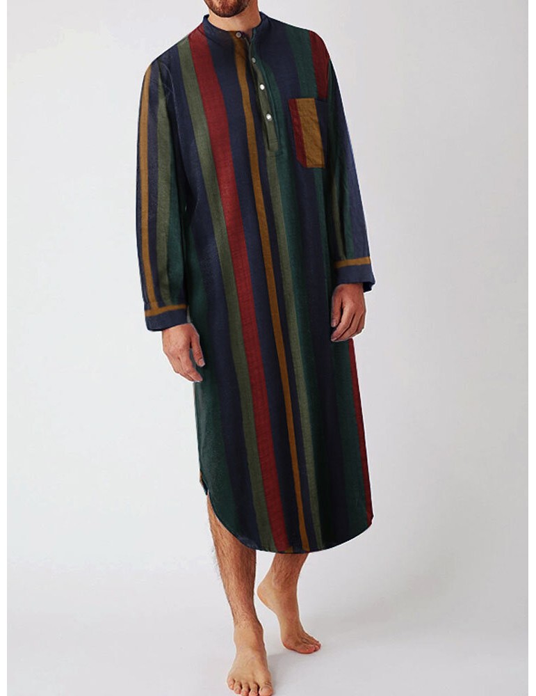Robes - Mens Cotton Striped Print Chest Pocket Henley Collar Long Sleeve Home Pajama Robes