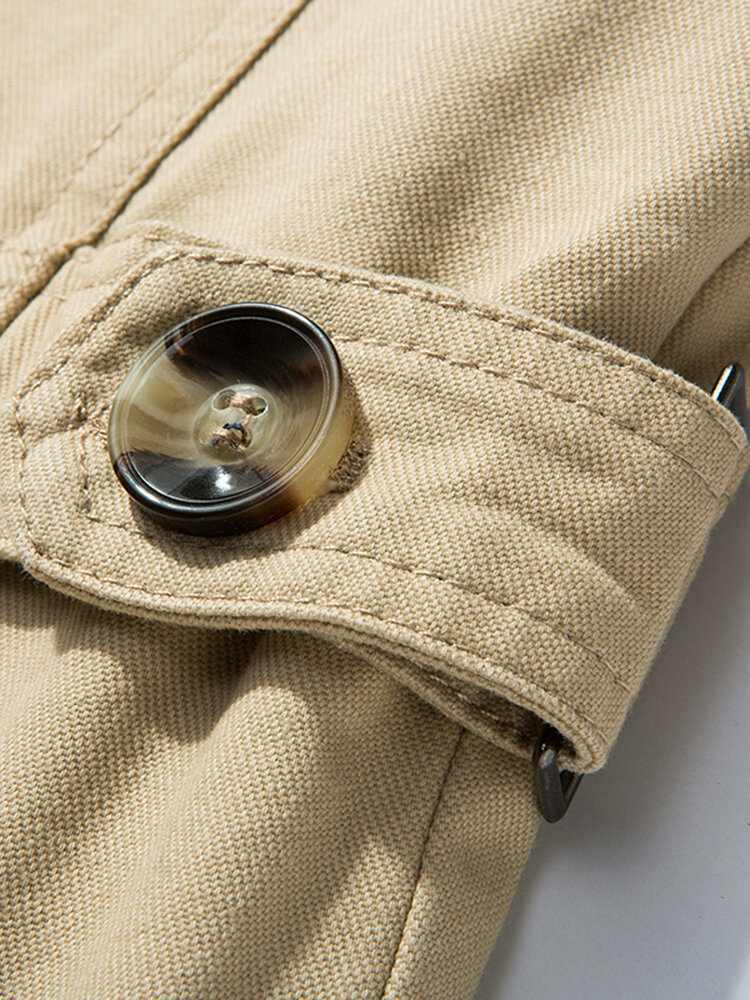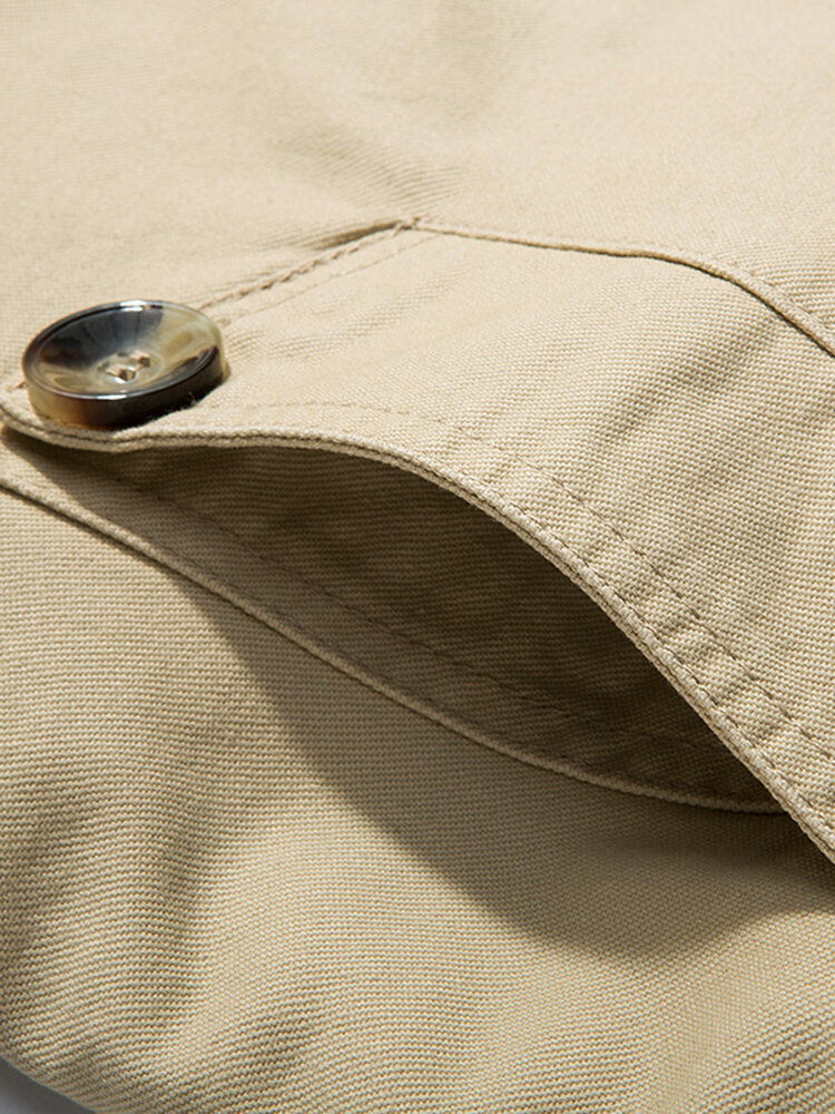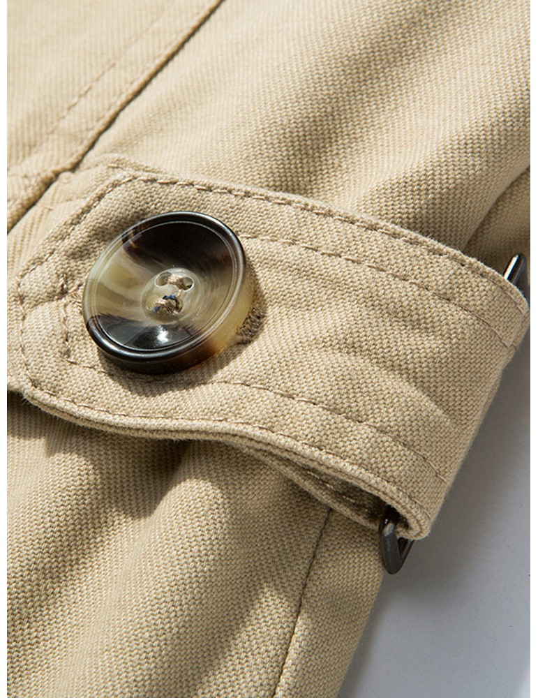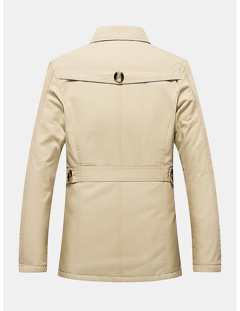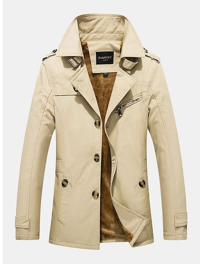Coats - Mens Cotton Thick Plush Lined Button Front Lapel Warm Coats With Pocket