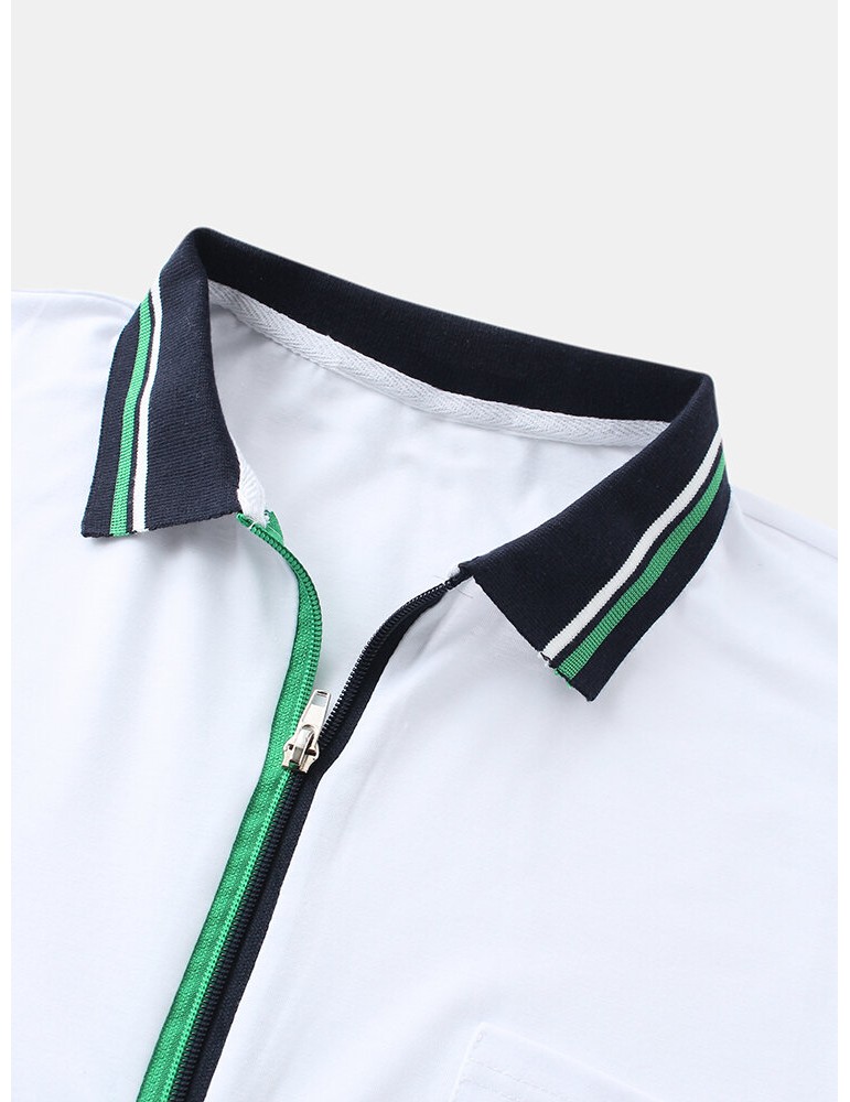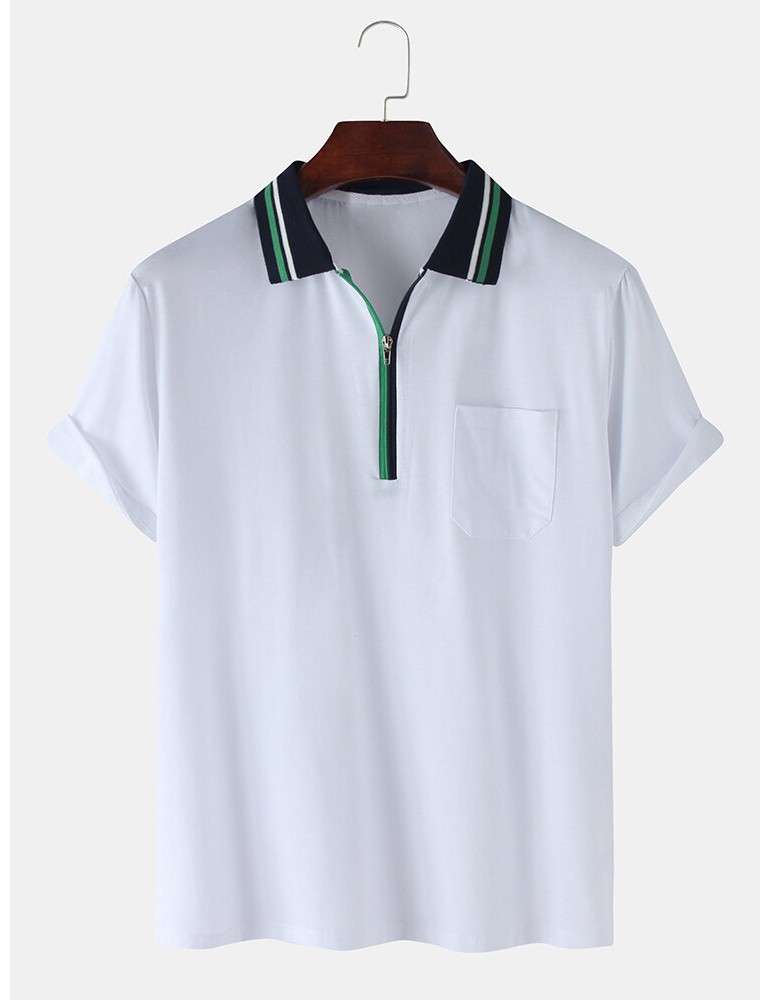 Golf Shirts - Mens Front Zip Chest Pocket Short Sleeve Lesure Sport Golf Shirts