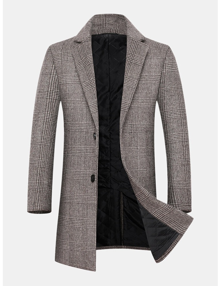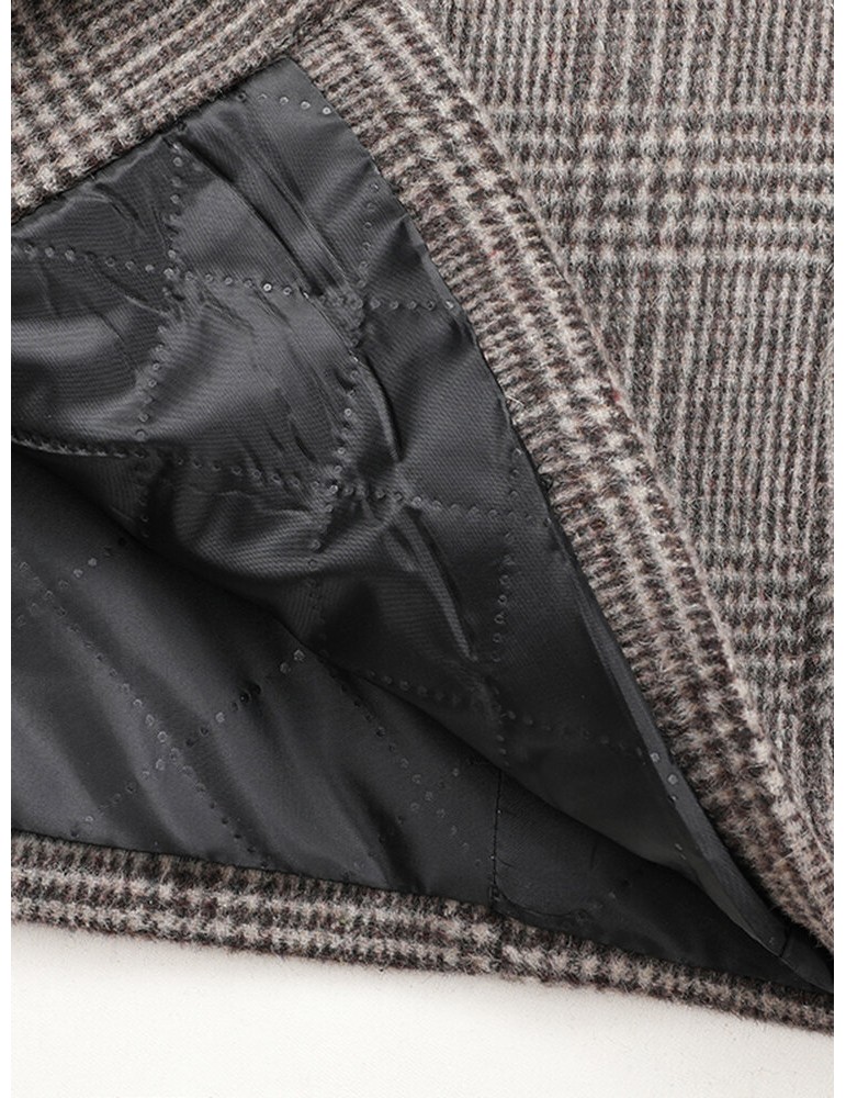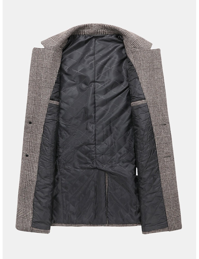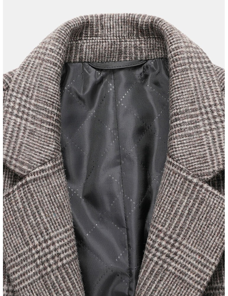 Coats - Mens Houndstooth Woolen Single-Breasted Lapel Mid-Length Overcoat
