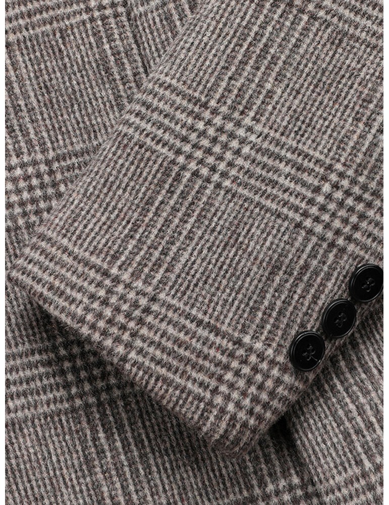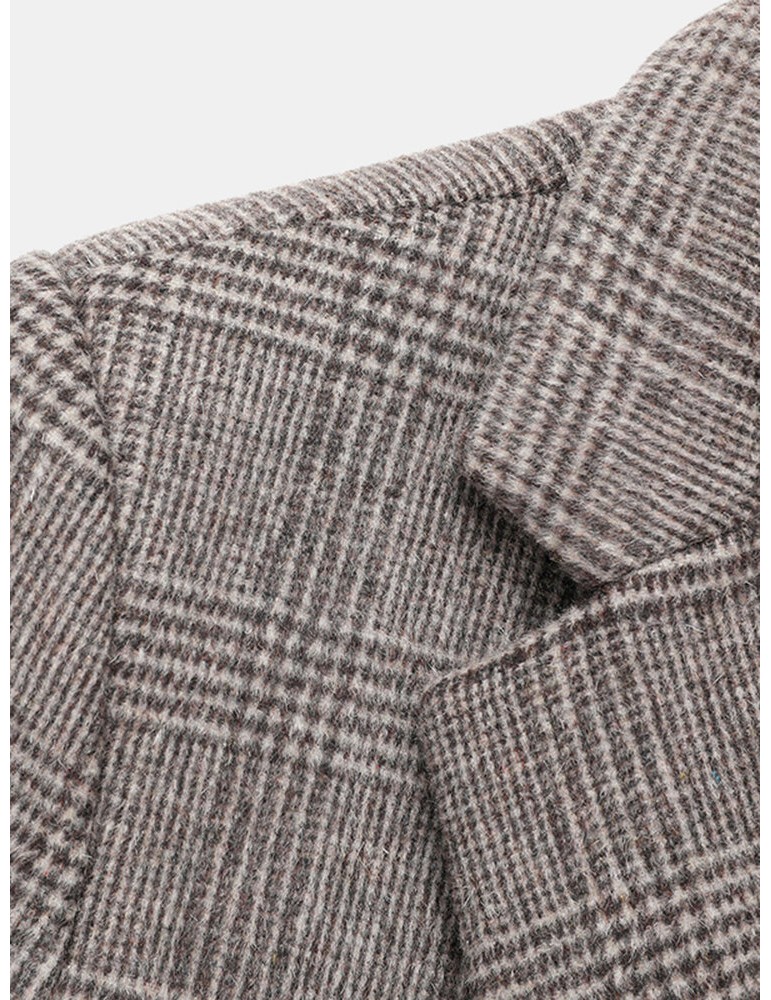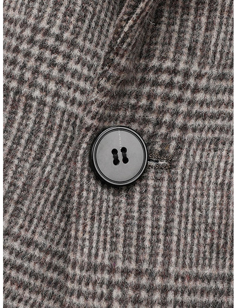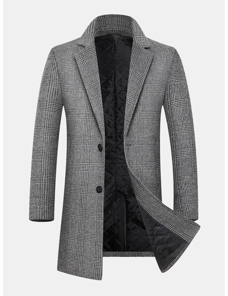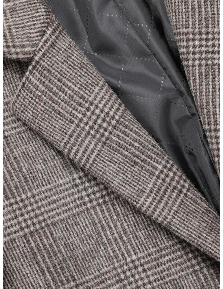 Coats - Mens Houndstooth Woolen Single-Breasted Lapel Mid-Length Overcoat