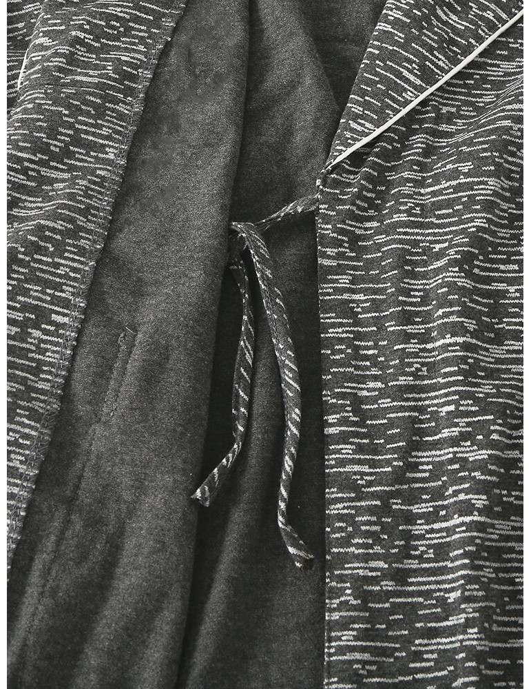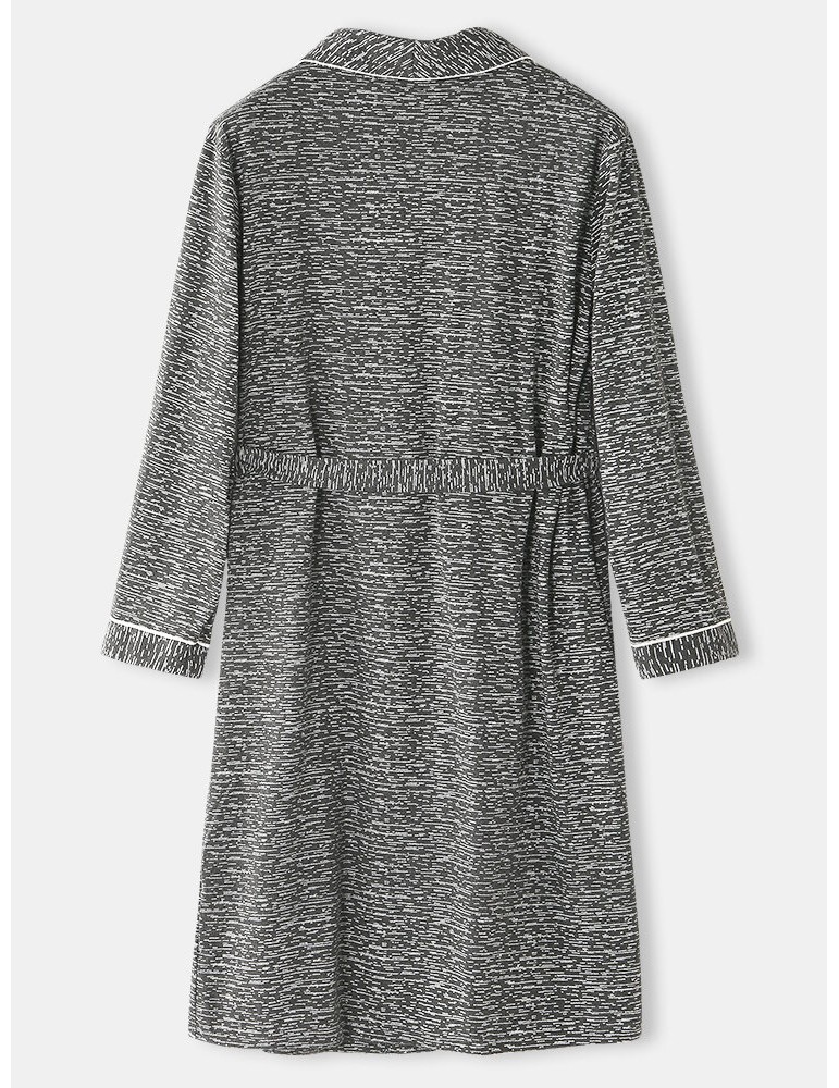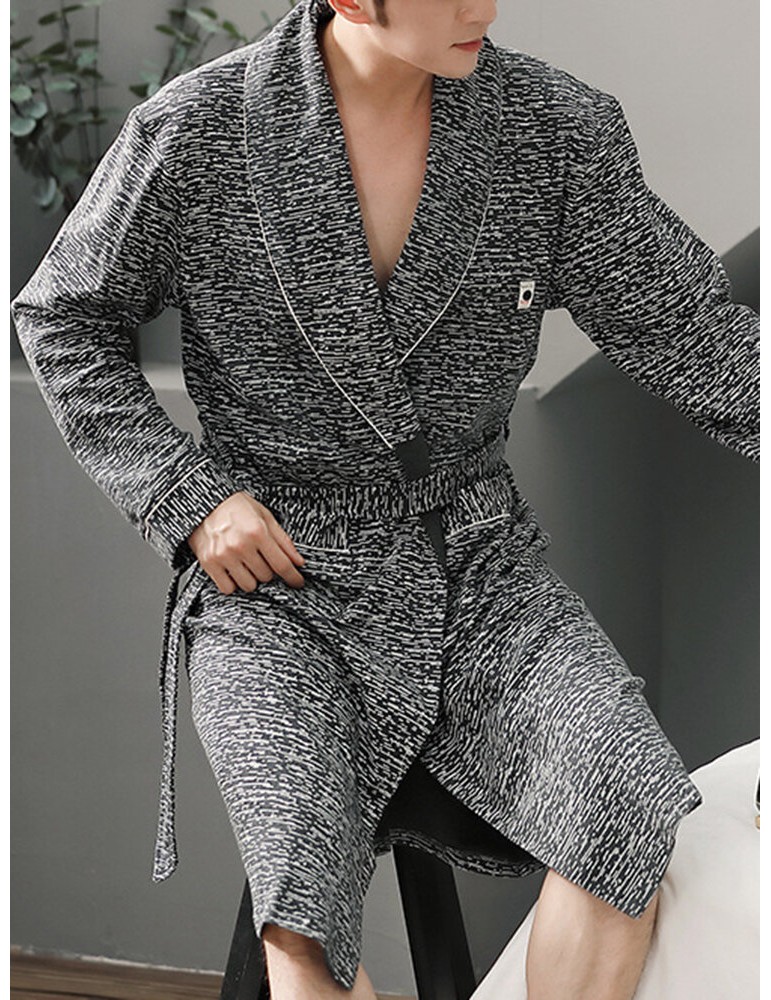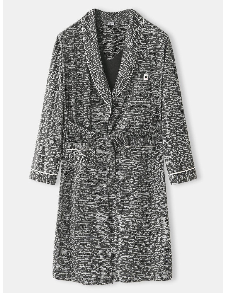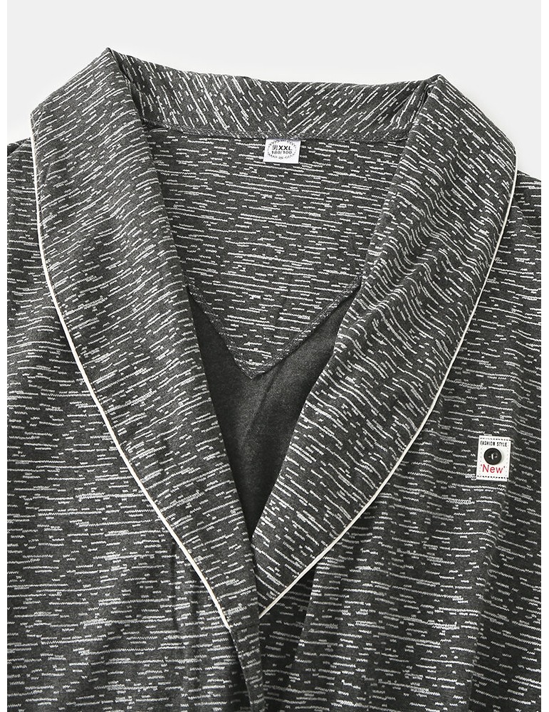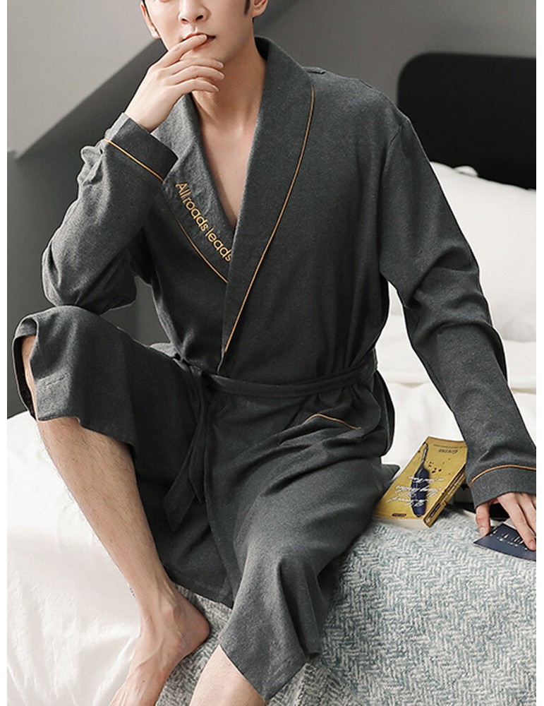 Robes - Mens Solid Color Letter Embroidery Double Pocket Lapel Sleepwear Robes With Sashes
