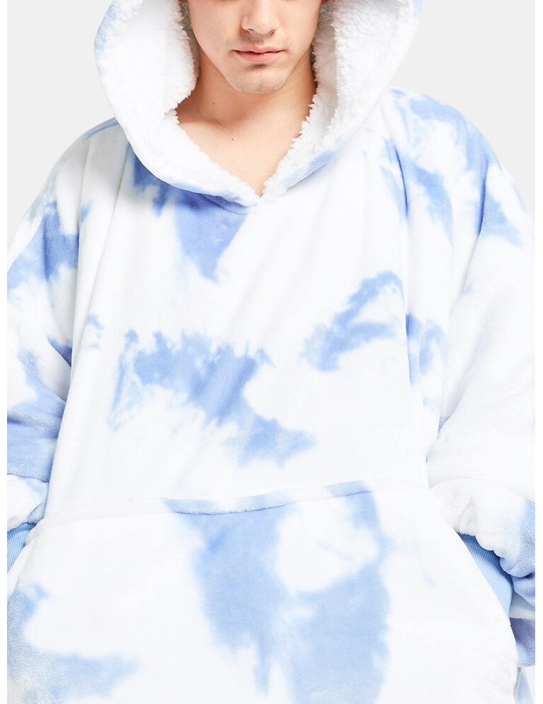 Robes - Mens Thicken TIe-Dye Fleece Lined Warm Loose Home Blanket Hoodie With Kangaroo Pocket