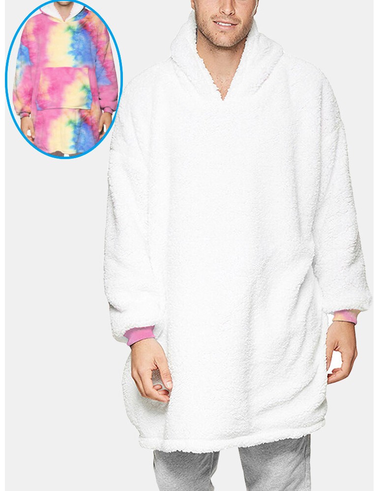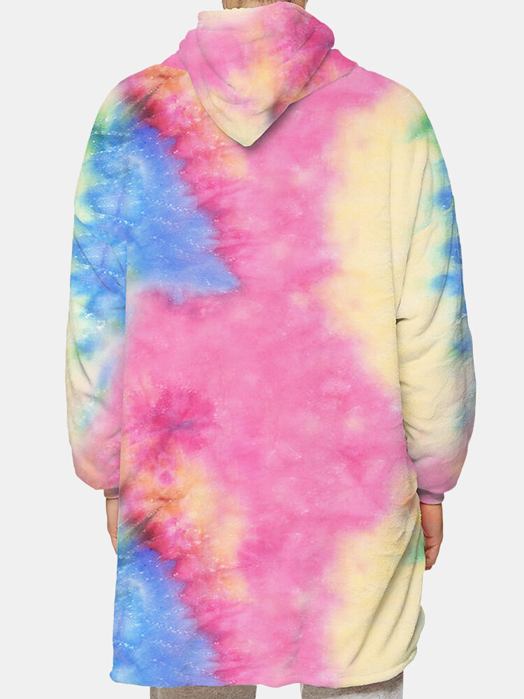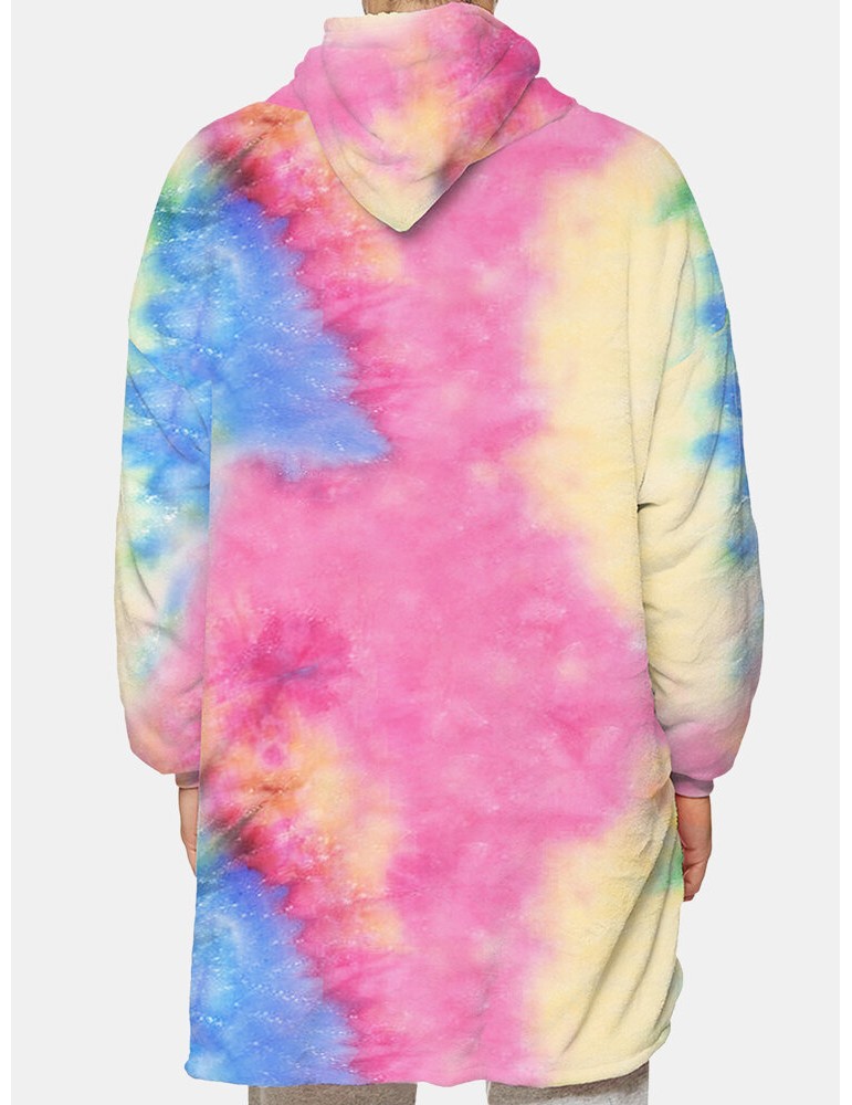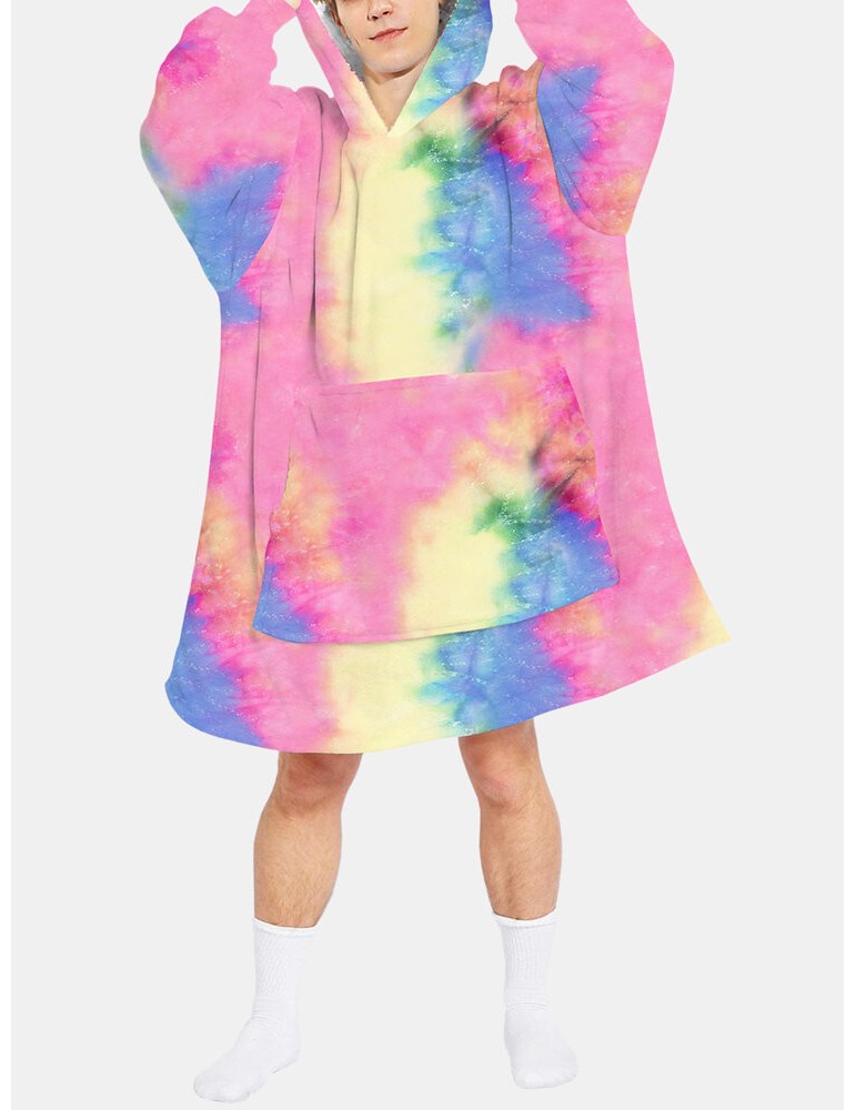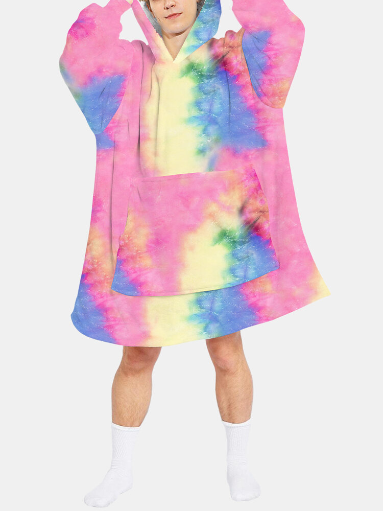 Robes - Mens Tie Dye Two-Sided Wearable Fleece Oversized Blanket Hoodie Loungewear With Handy Pocket