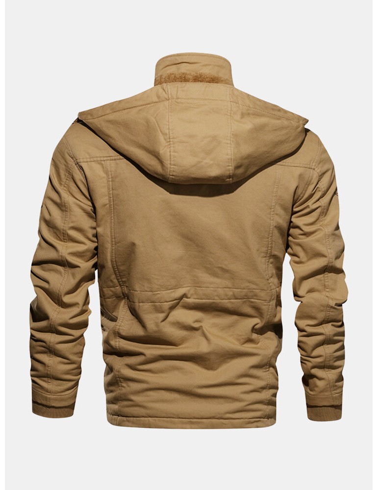 Coats - Mens Winter Fleece Warm Hooded Multi Pockets Casual Cotton Jacket